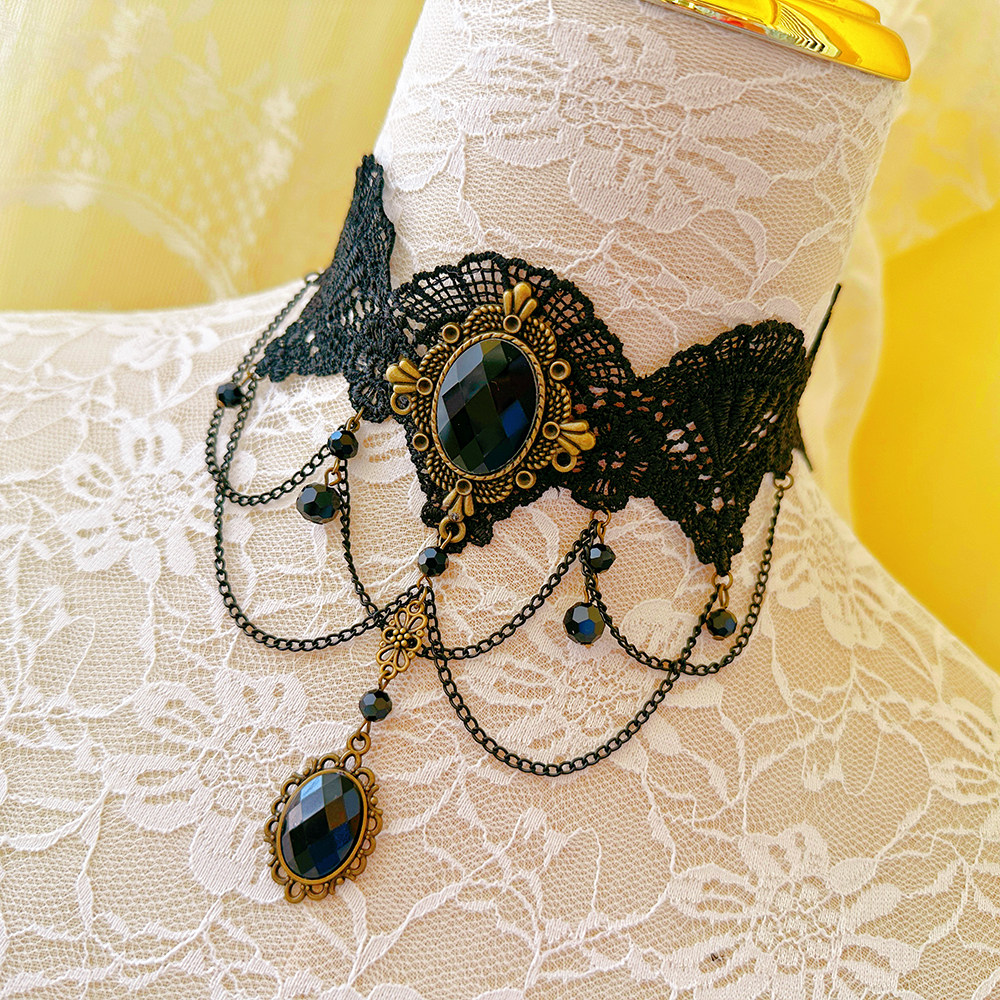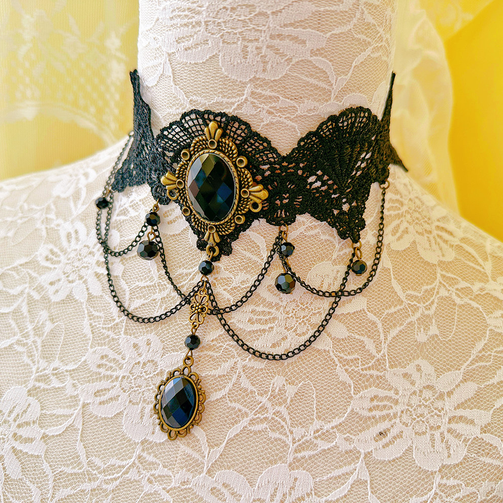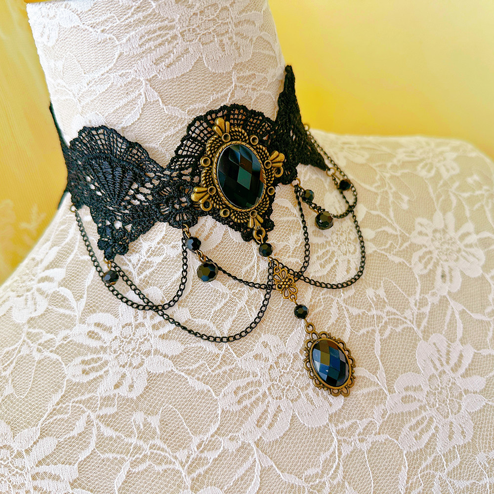 哥特风黑色蕾丝项链女宝石吊坠多层氛围感欧式复古首饰LSXL002