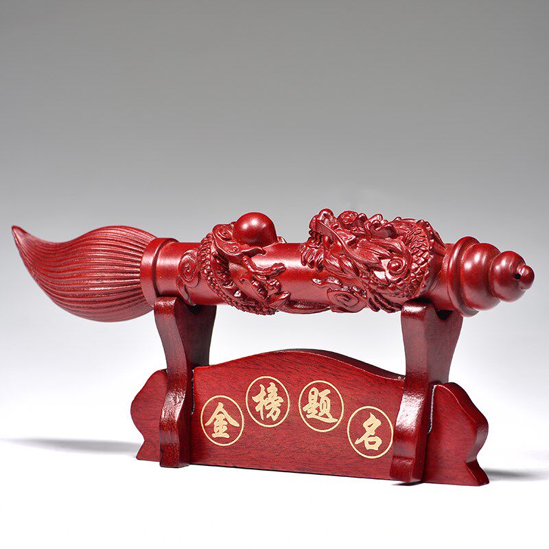 红色木质文昌笔摆件红木大笔家居客厅桌面装饰毛笔工艺品开业送礼