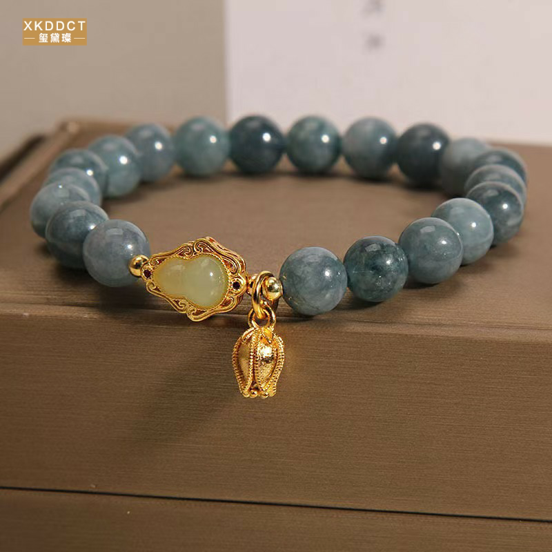 XKDDCT石蔚蓝色手链女好葫芦手串吊坠礼莲花元素混合材质新中式I