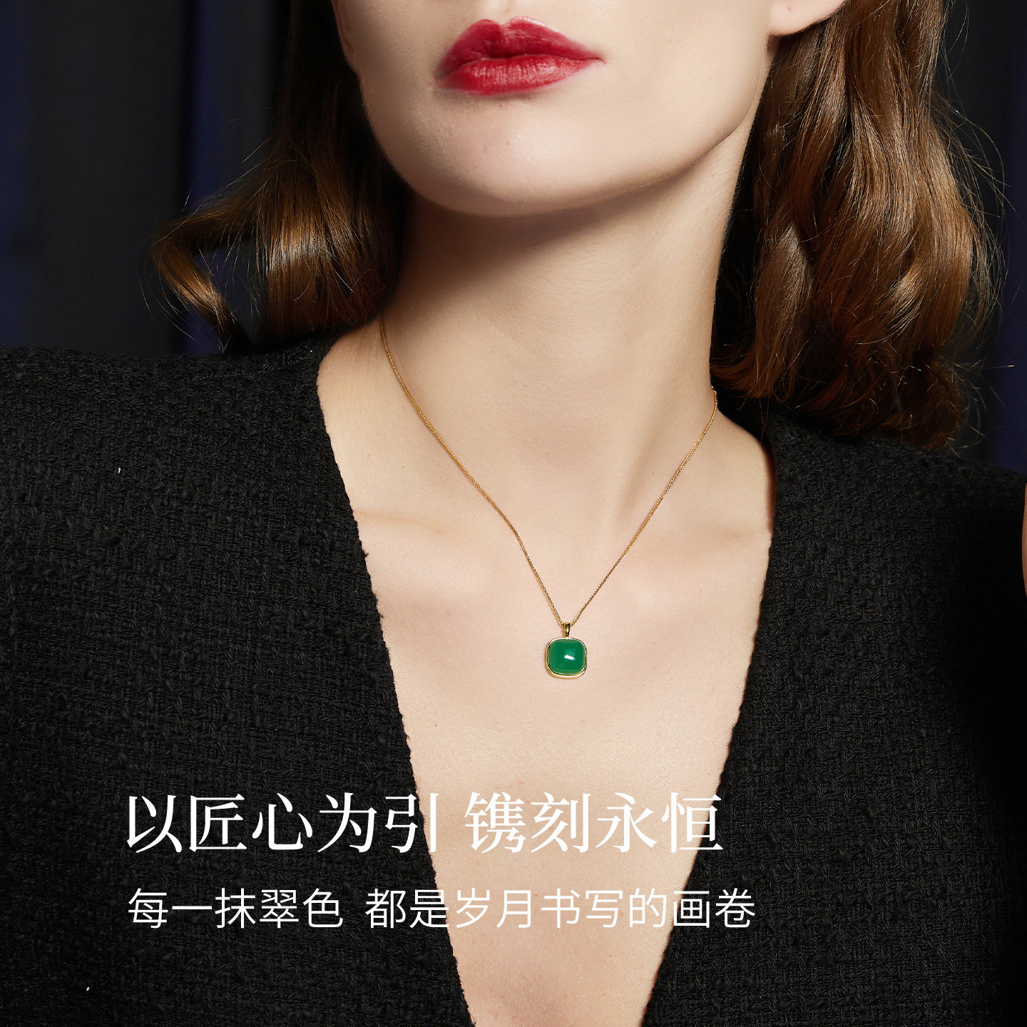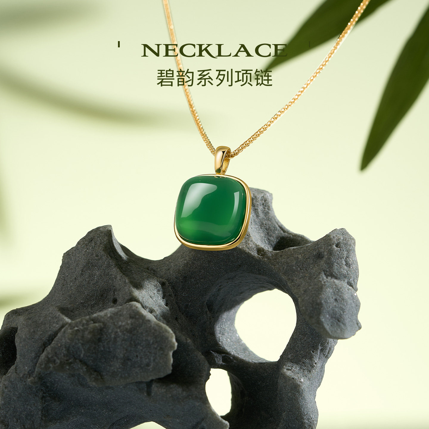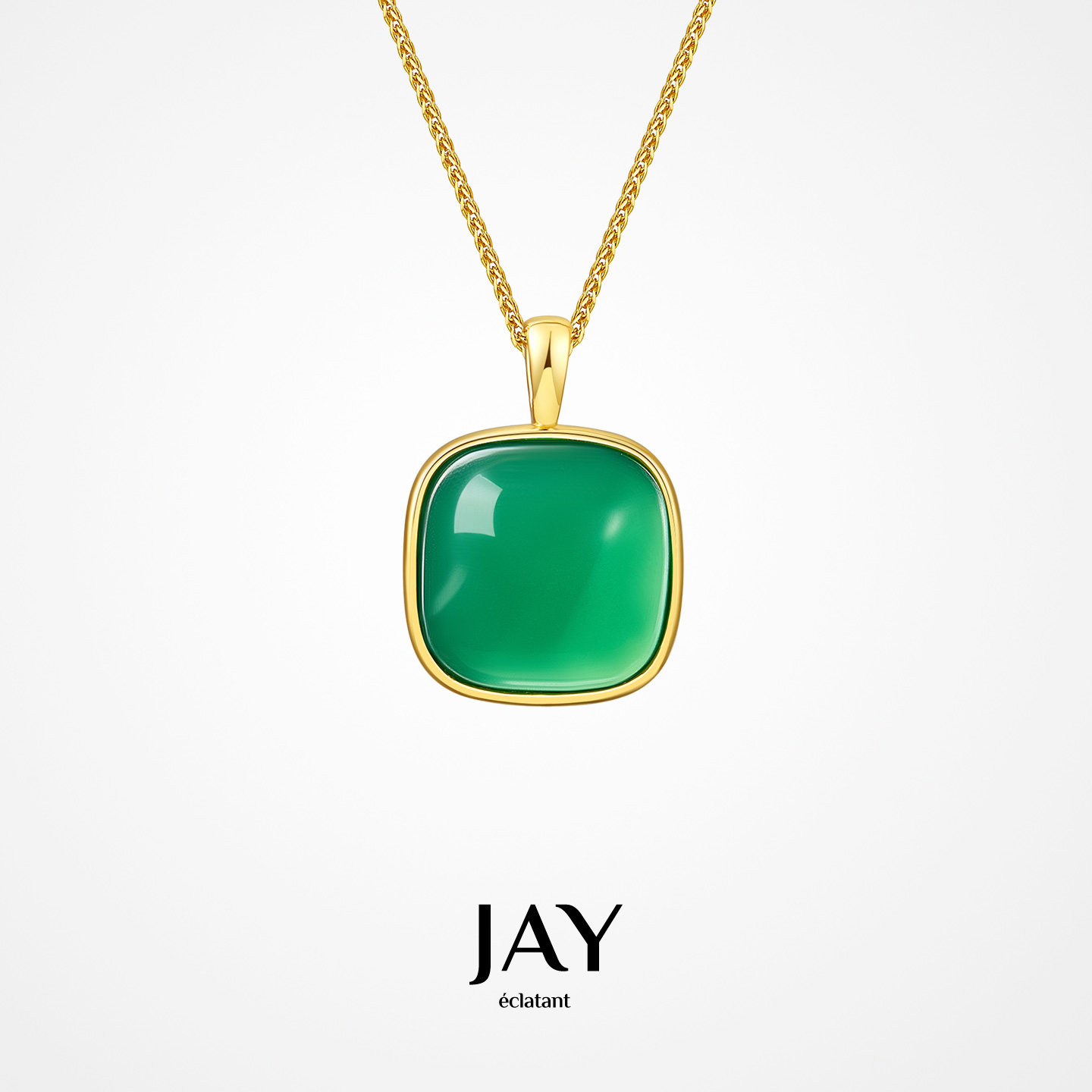 JAY新中式小方糖玉髓项链高级感轻奢小众绿色吊坠925银锁骨链女