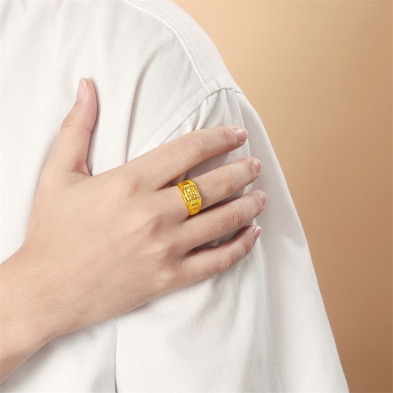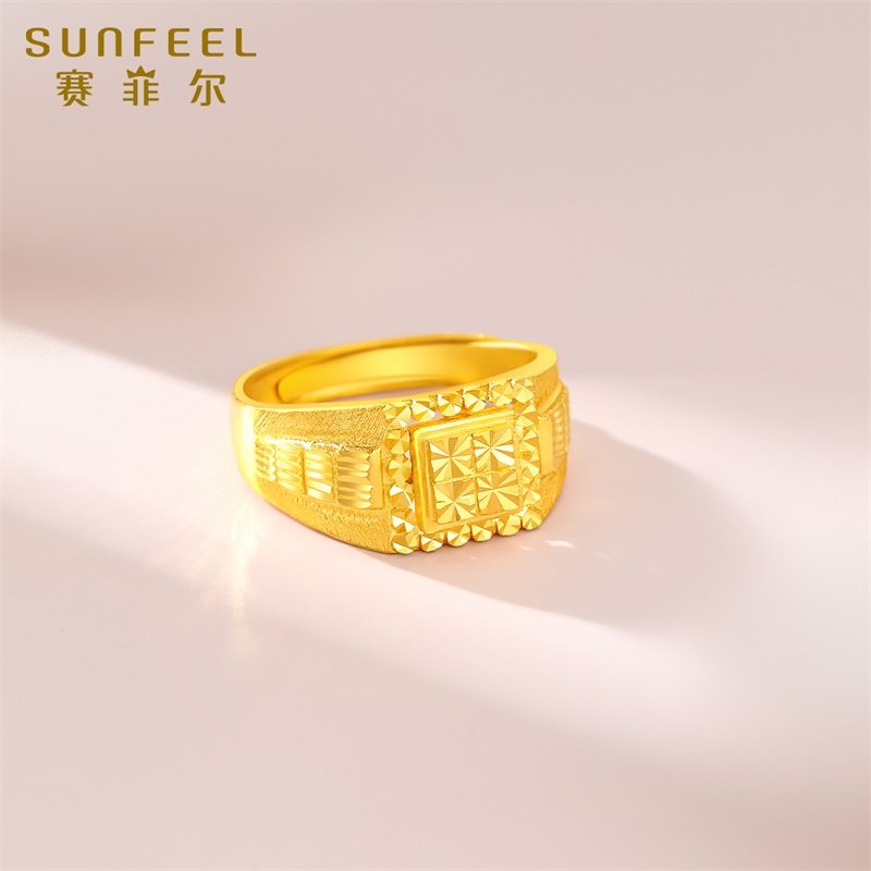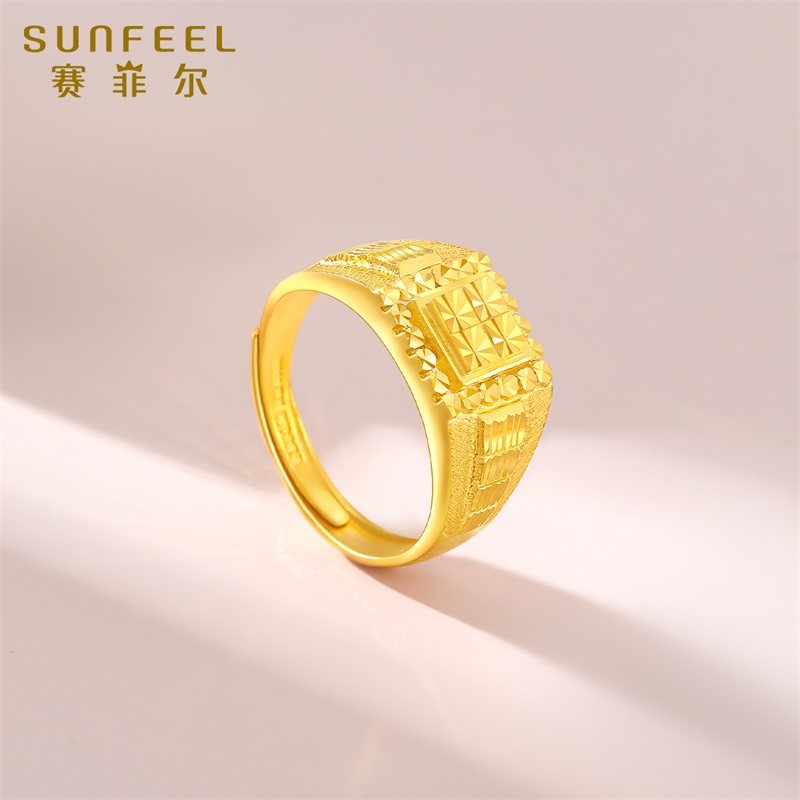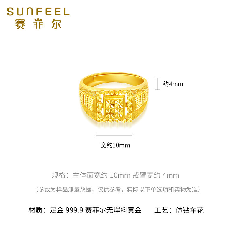 赛菲尔黄金戒指男士款 足金999.9车花方形活口男戒送男友送爸爸