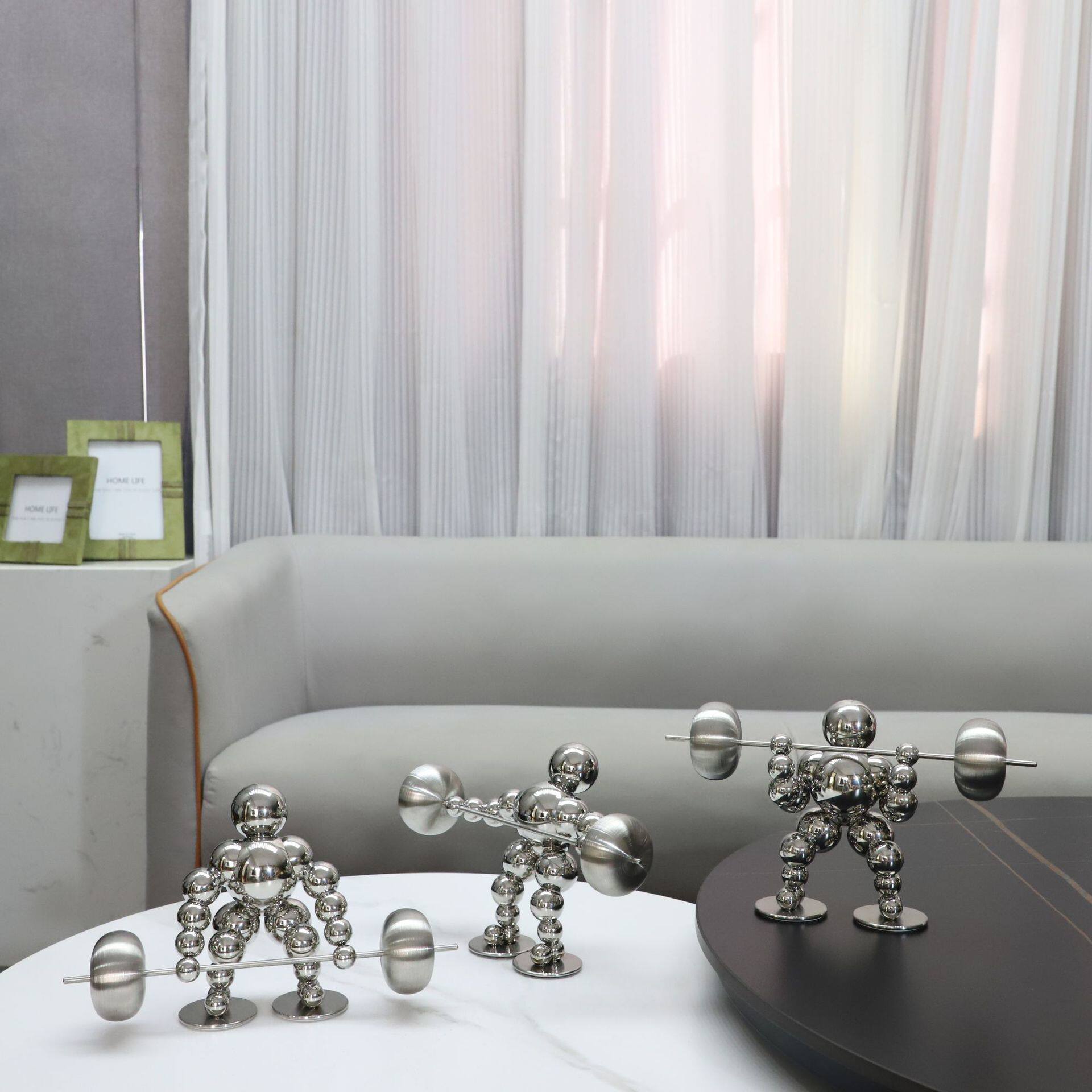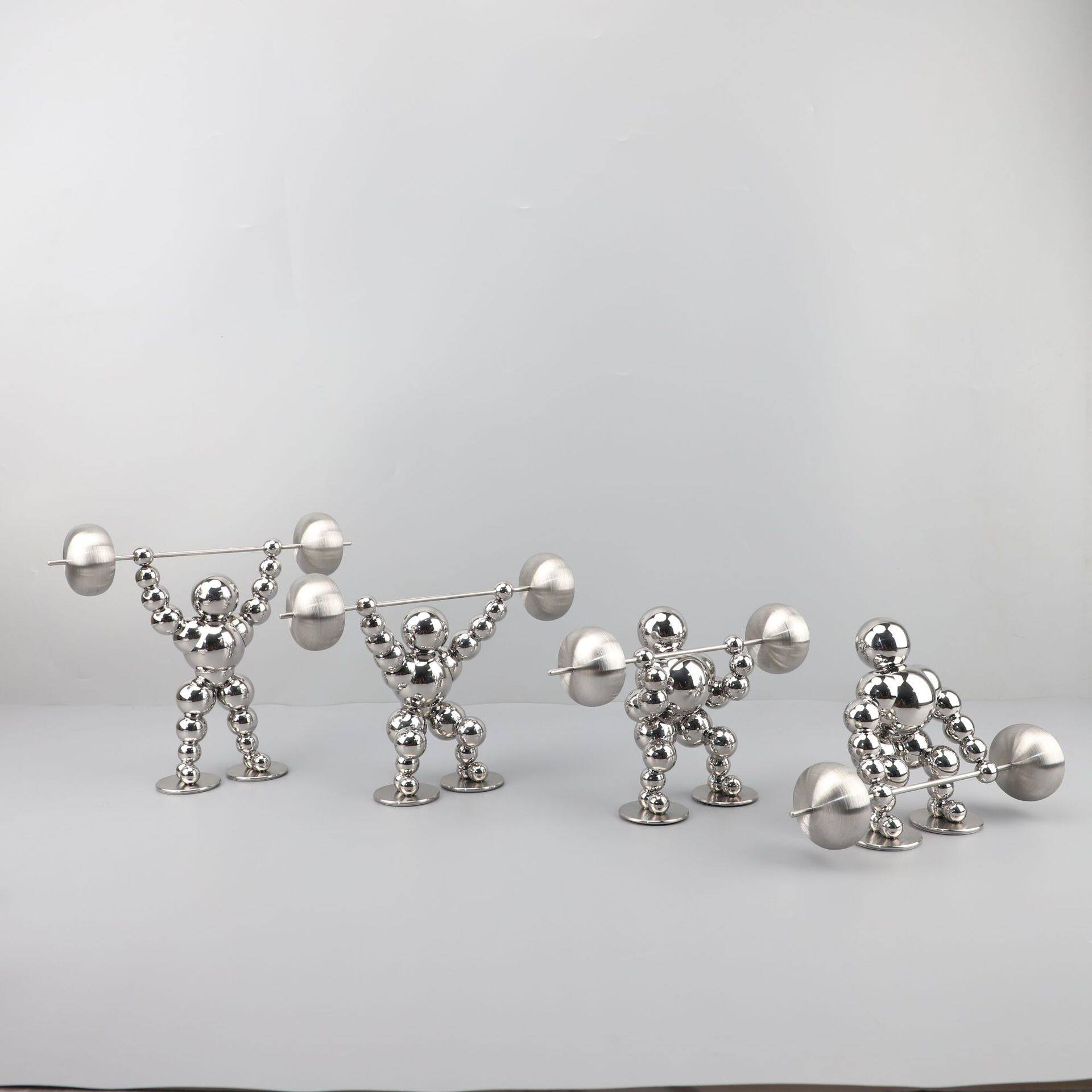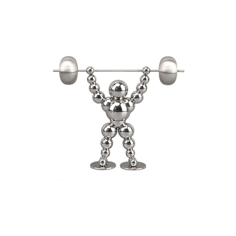 新中式烟灰色举重人金属艺术装饰品办公室样板间客厅家居桌面摆件