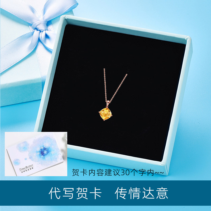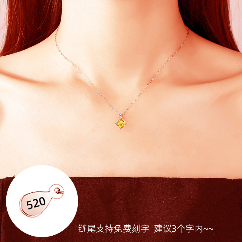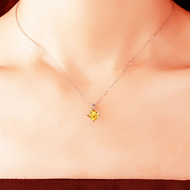 天然黄水晶925银项链女简约贵气时尚百搭方形黄色吊坠送证书