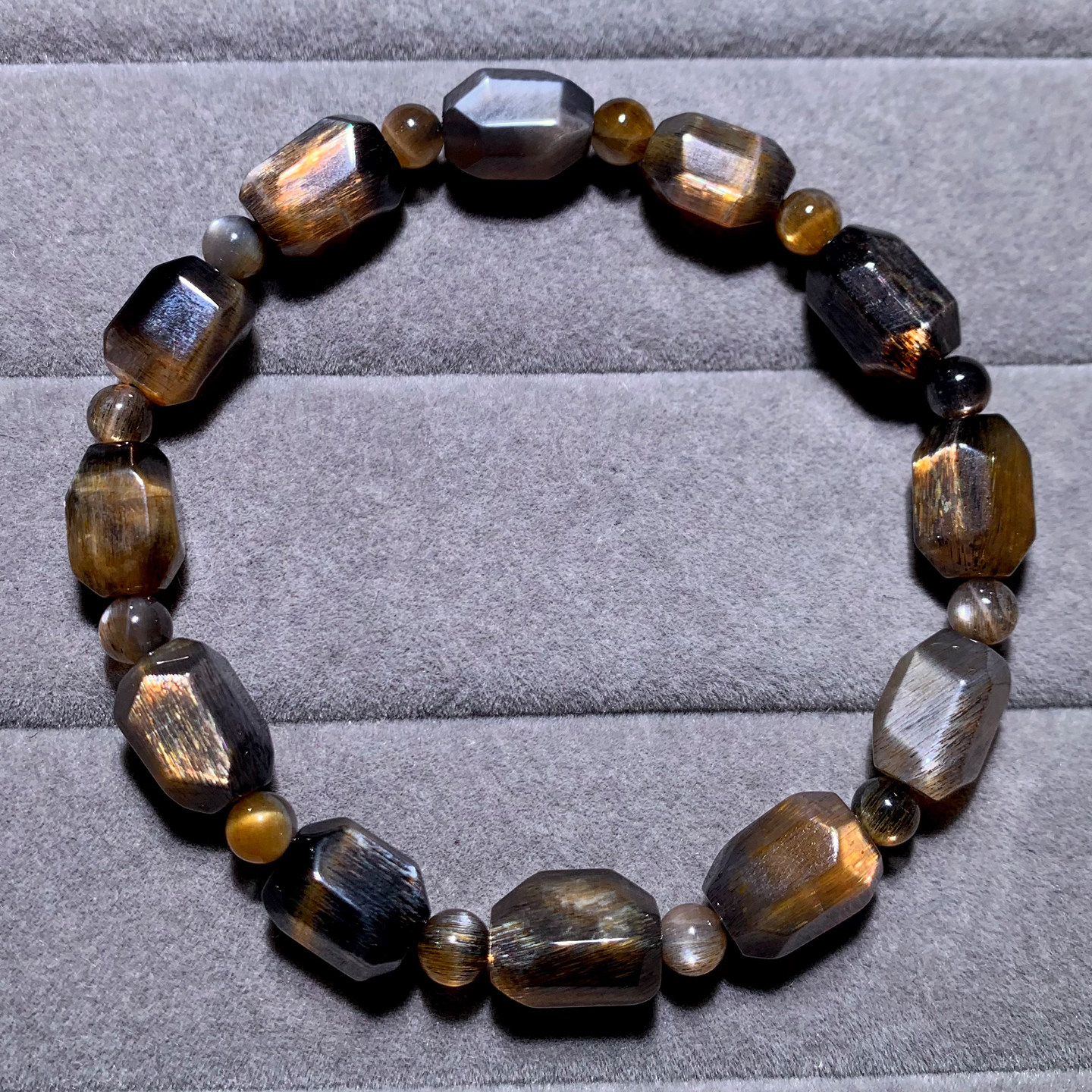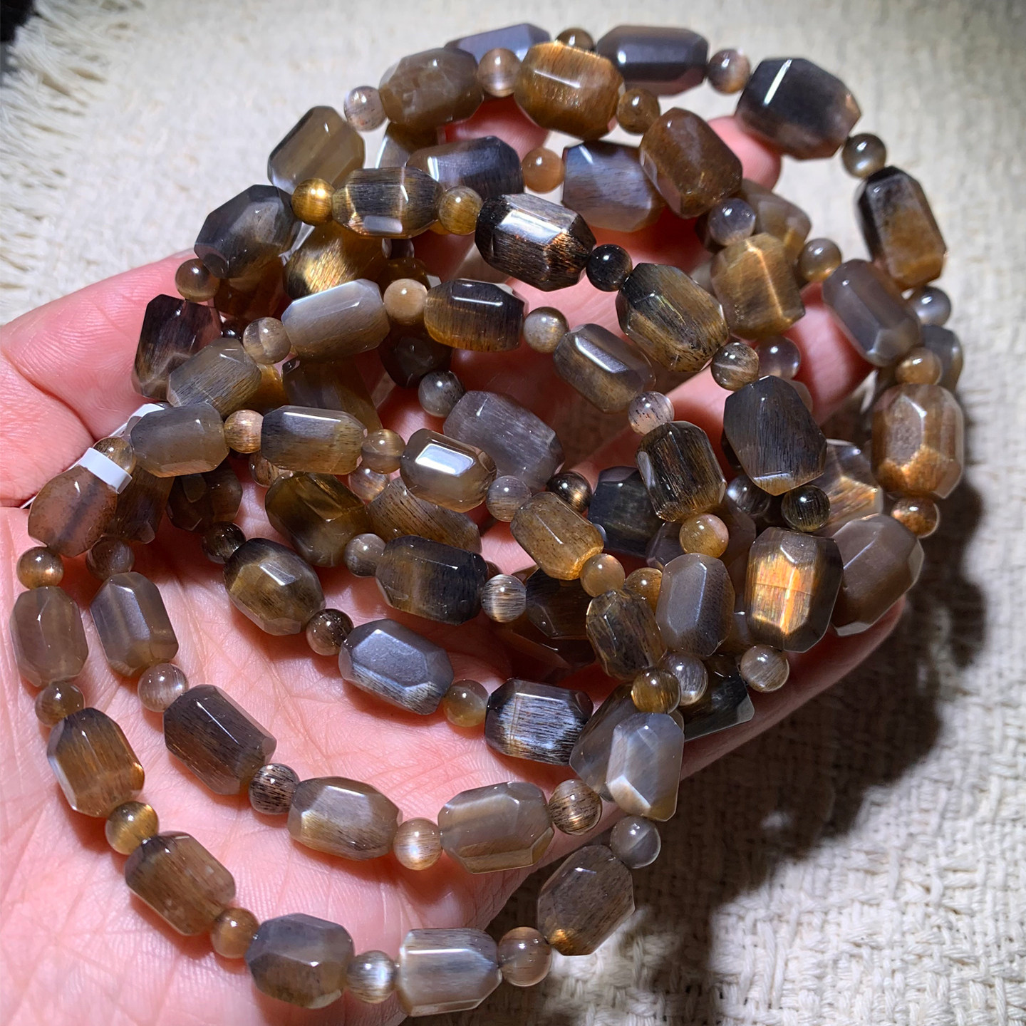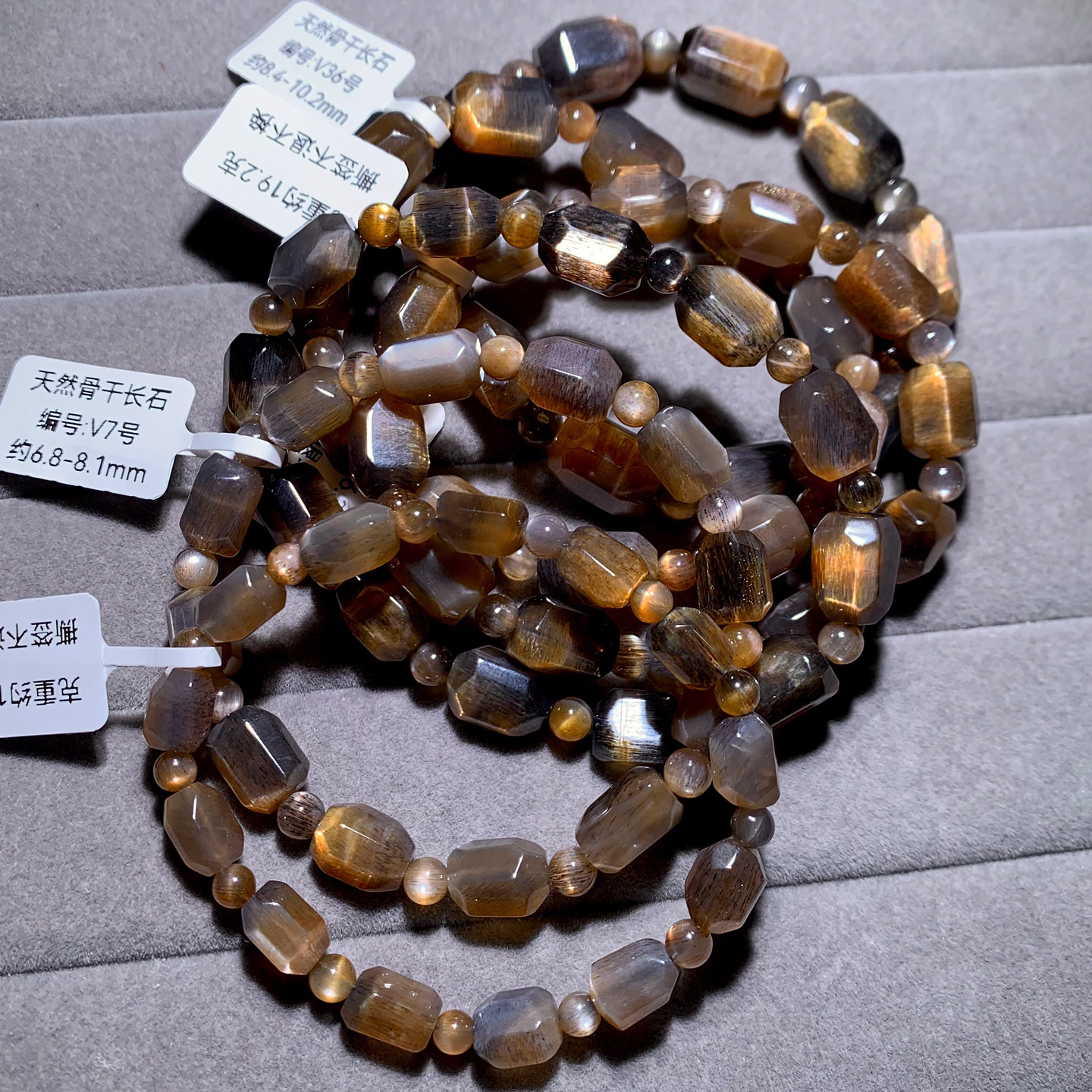 天然黑金骨干长石随形手串金黄色日光石单圈手链饰品水晶情侣款女