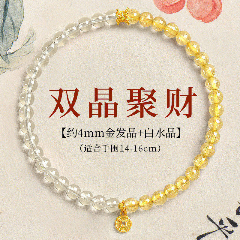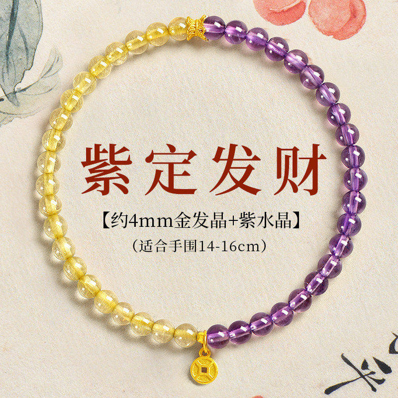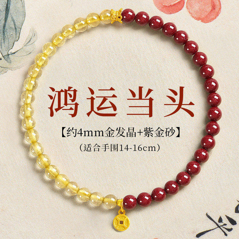 普陀山金发晶手串女招财转运珠黄水晶手链黄色旺财运金虎眼石聚财