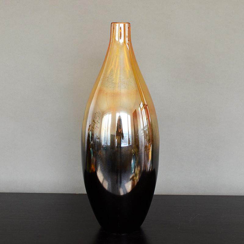 琥珀黑色创意家居装饰品美式乡村时尚透明玻璃摆件几何形花瓶