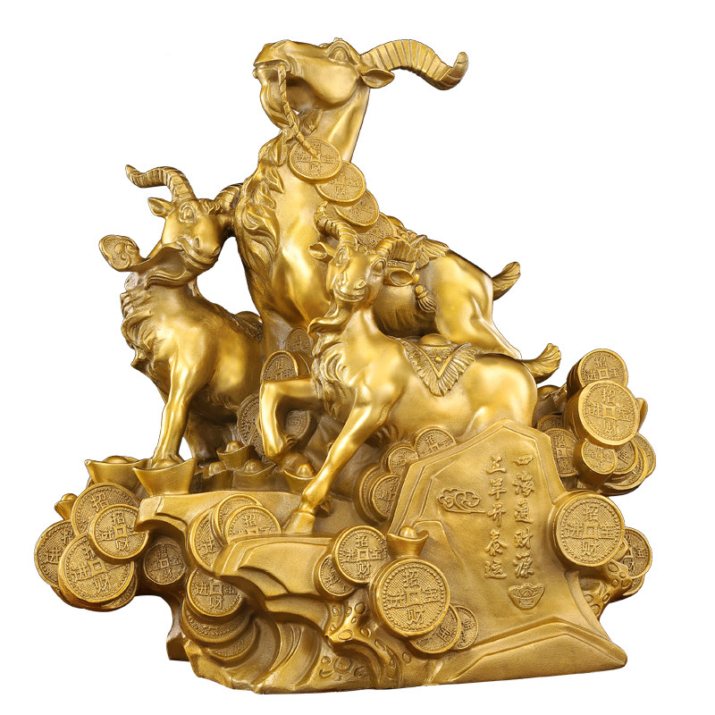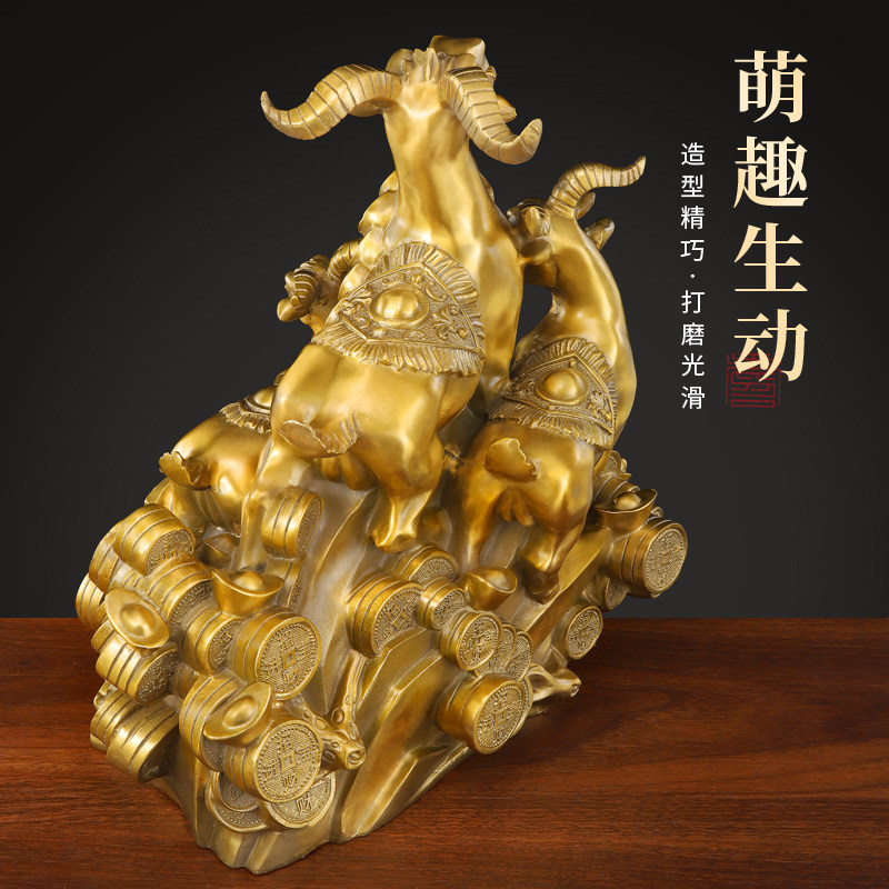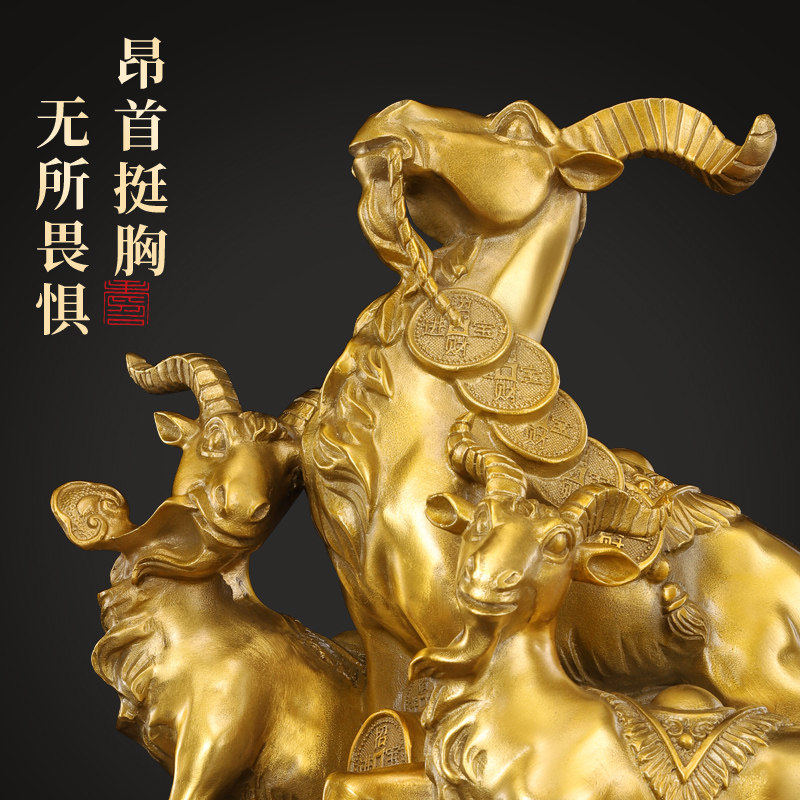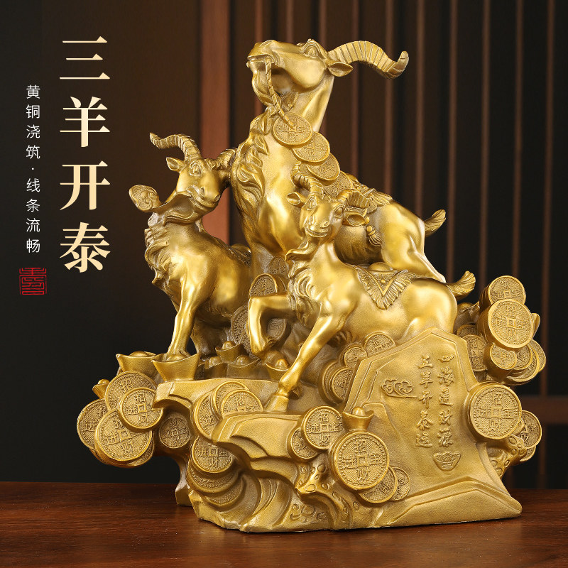 新品铜三羊开泰摆件o纯黄铜领头羊装饰生肖羊铜羊家居客厅办公室