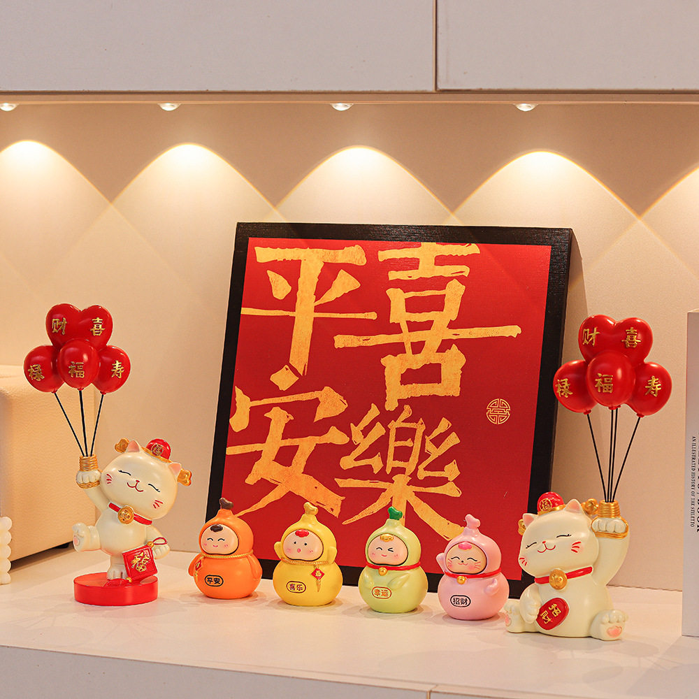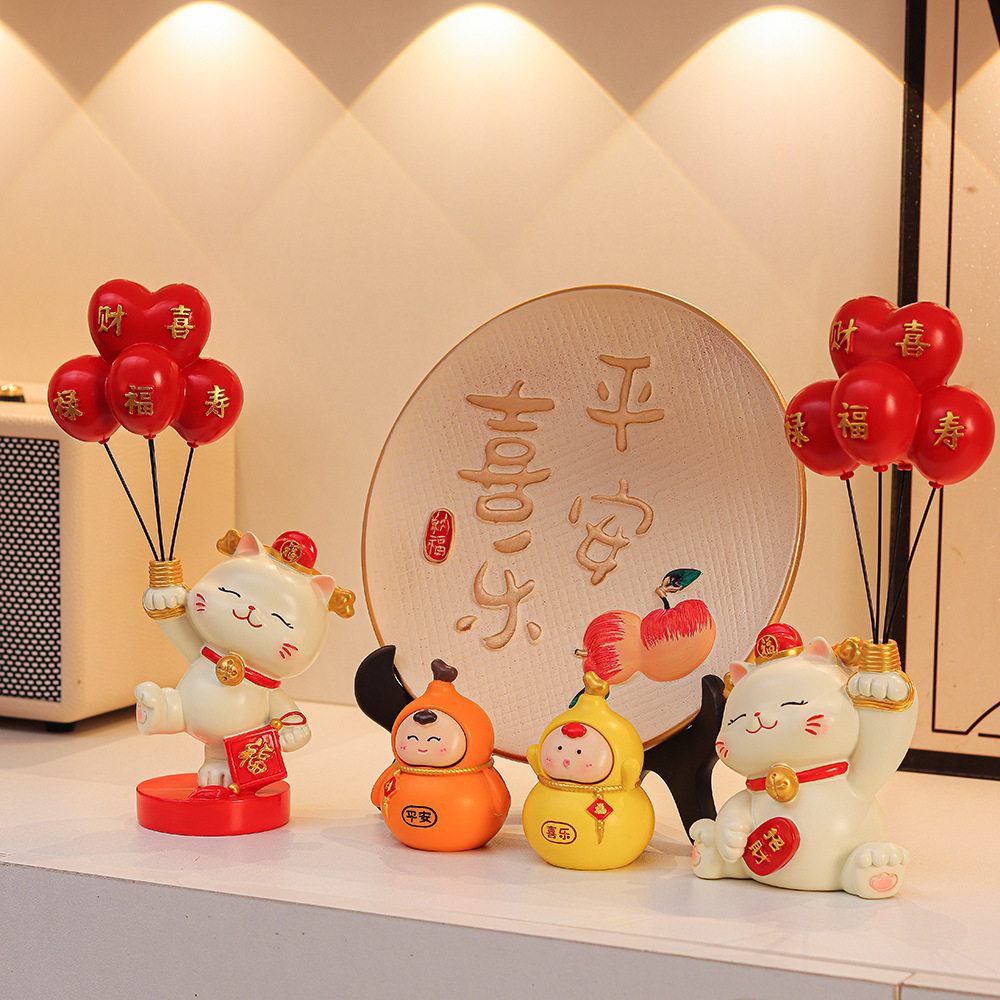 创意气球招财猫玄关摆件进门鞋柜客厅家居装饰品乔迁新居送礼礼品