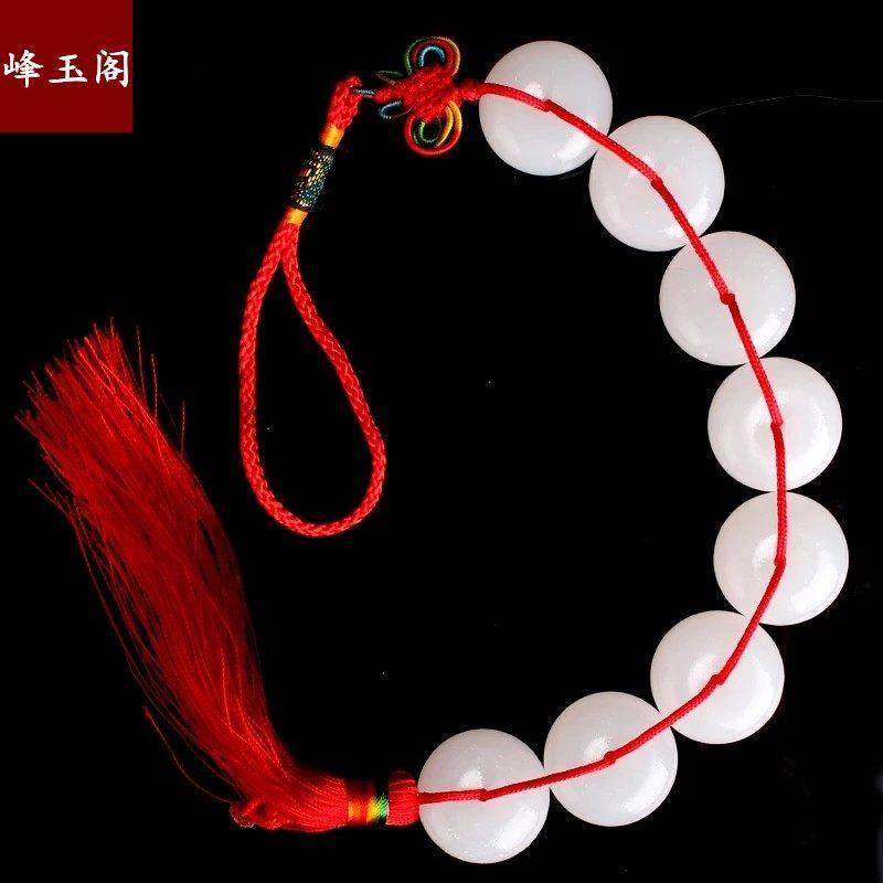 八白玉风水挂件天然玉石八白串平安扣居家客厅装饰玉璧风水玉挂件