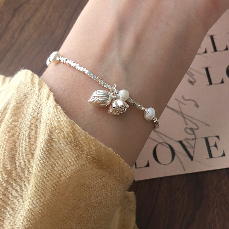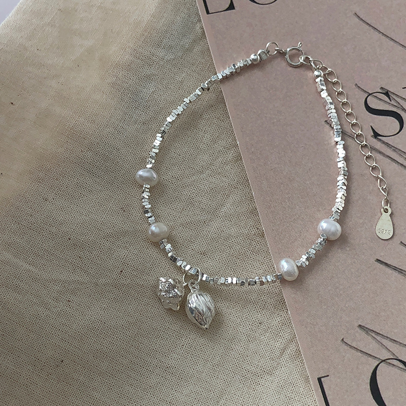 法国Cherry Kittys925银新中式淡水珍珠碎银串珠莲花莲蓬手链