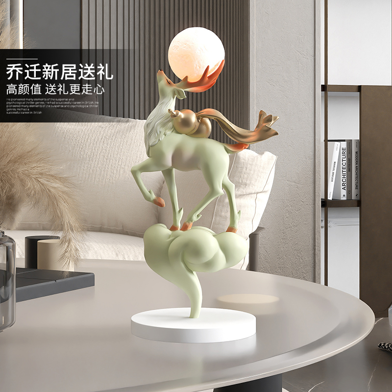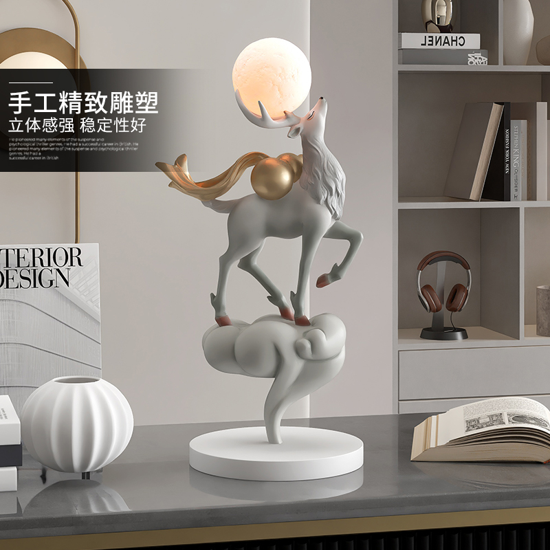 新中式麋鹿摆件家居饰品s客厅玄关酒柜床头小夜灯桌面装饰乔迁礼