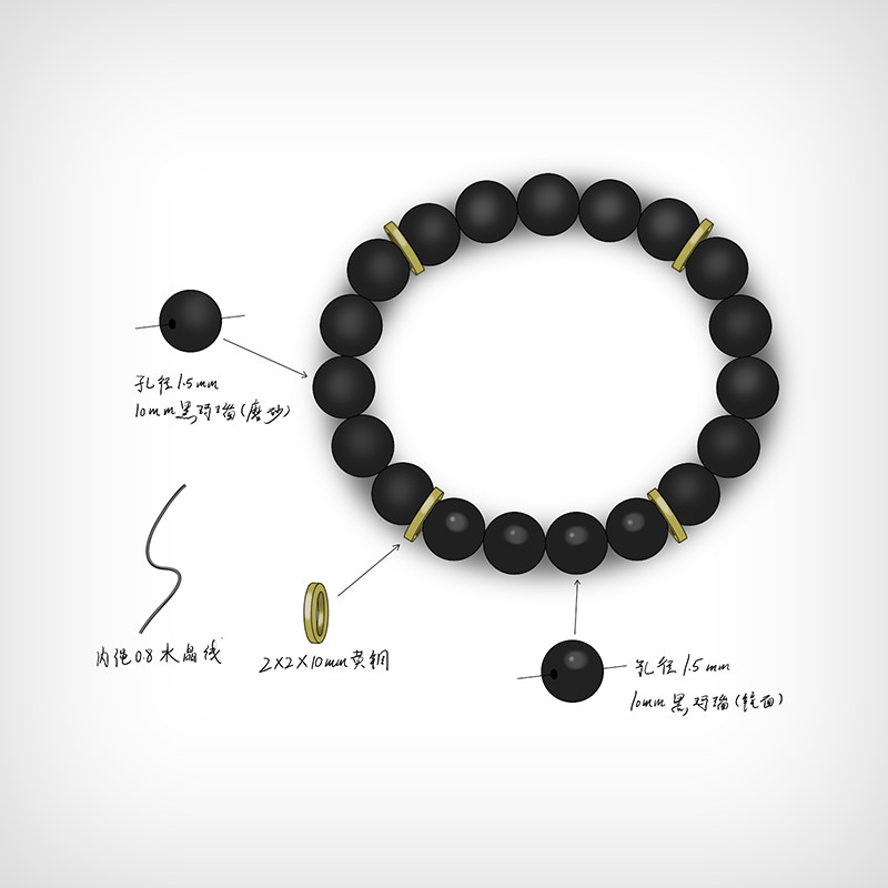 手工 逸述 原创 黑玛瑙潮男款简约小众设计 个性手链 复古手串