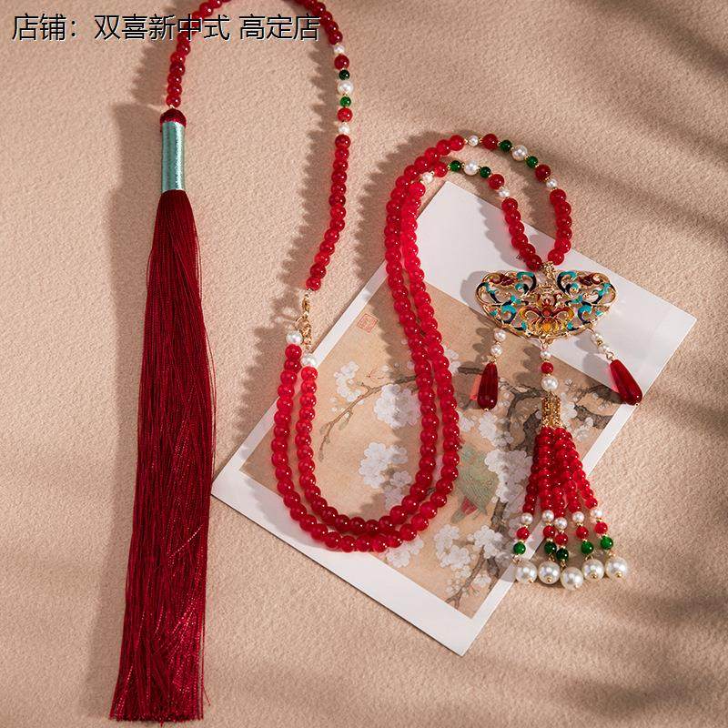 马面裙配饰项链汉服璎珞长流苏古风软璎珞红色国风古装配饰新中式