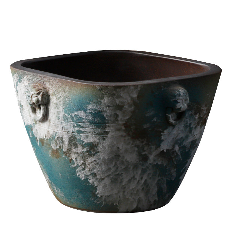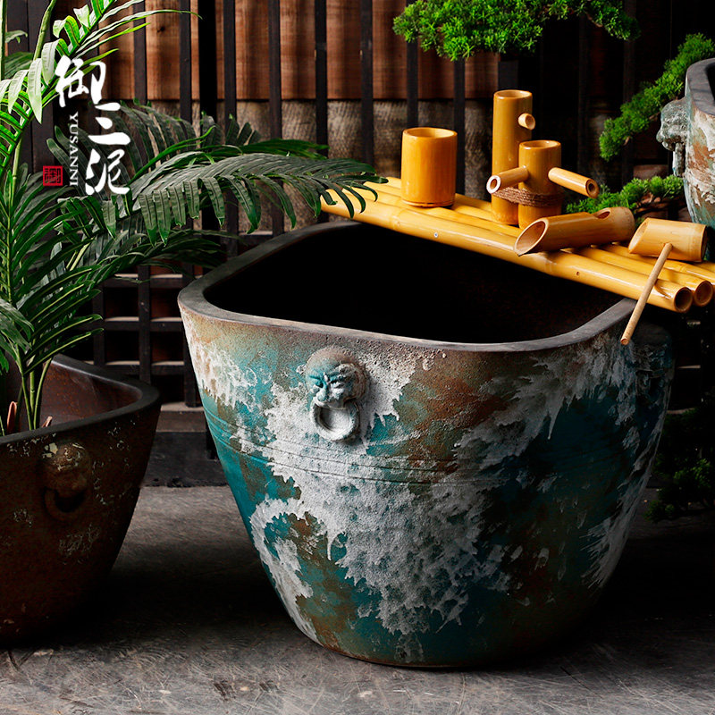 复古陶瓷仿古大缸浮世绘鱼缸落地摆件庭院园林粗陶手工流水水景盆