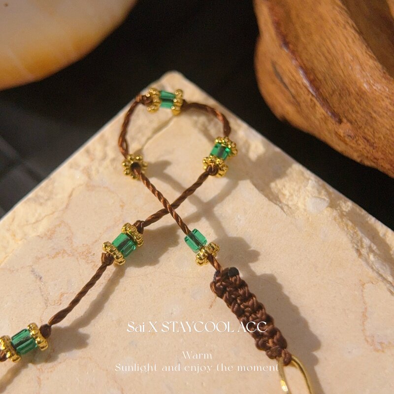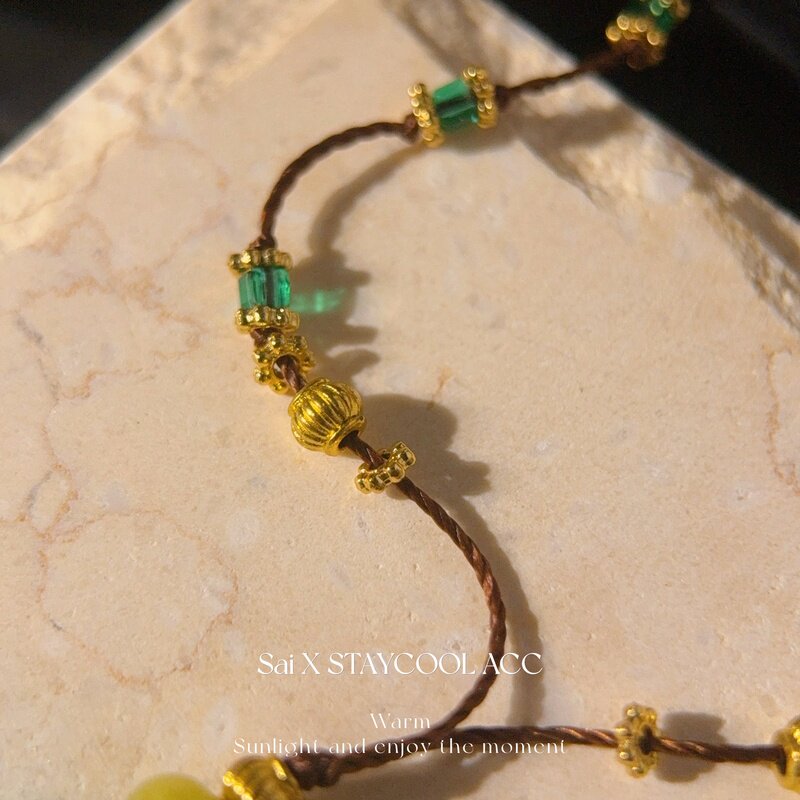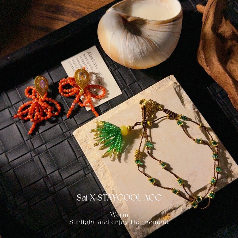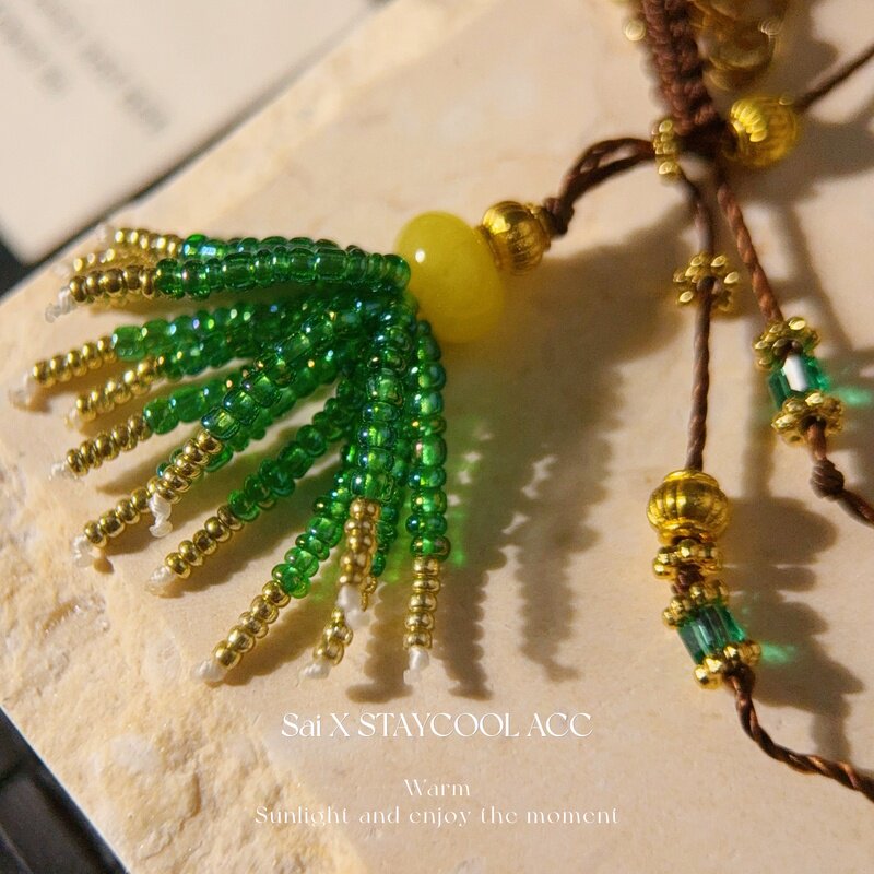 复古绿色流苏手工串珠项链女士毛衣链度假风锁骨链轻奢