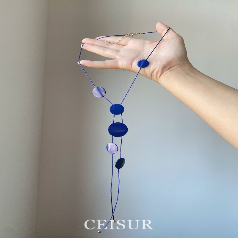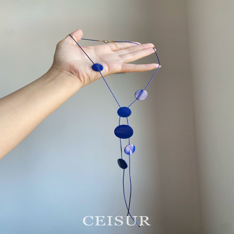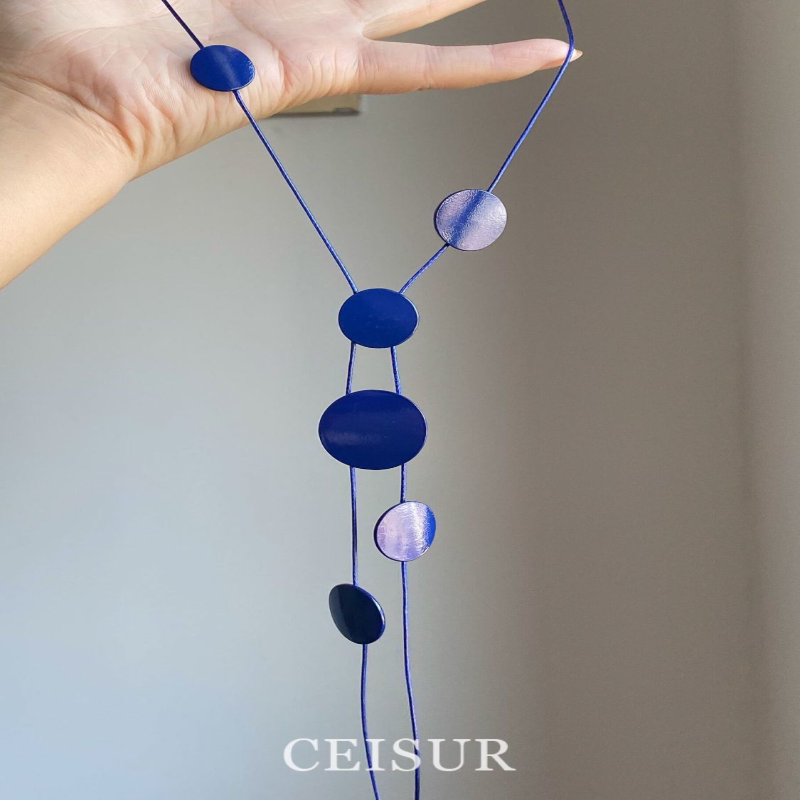 蓝调时刻~超显白克莱因蓝色不规则圆片项链度假小众设计颈链百搭