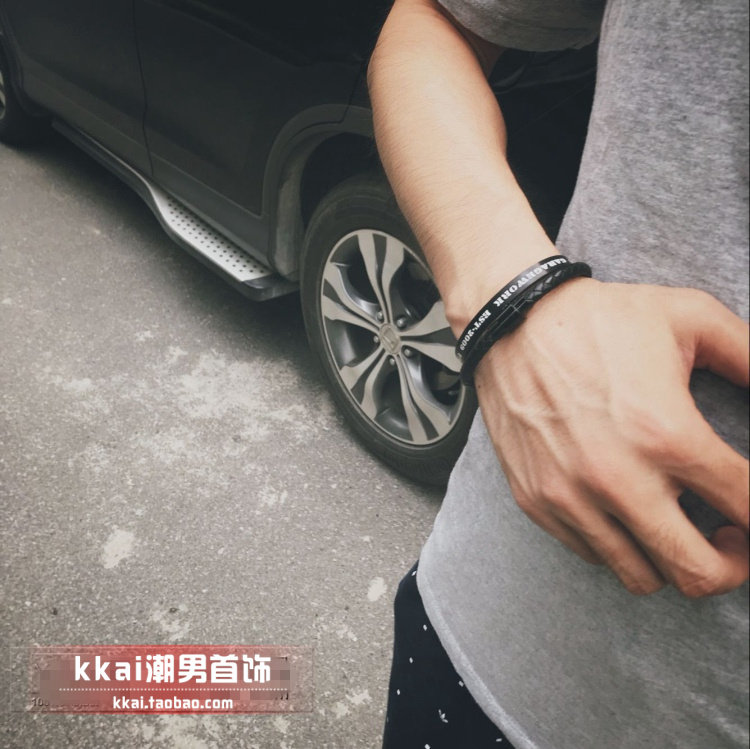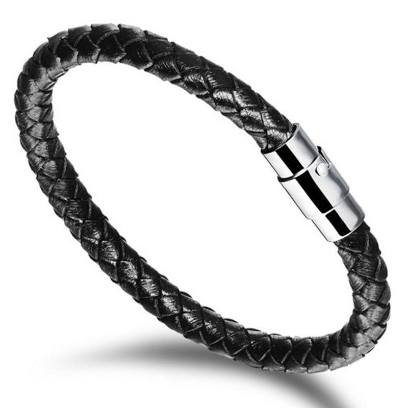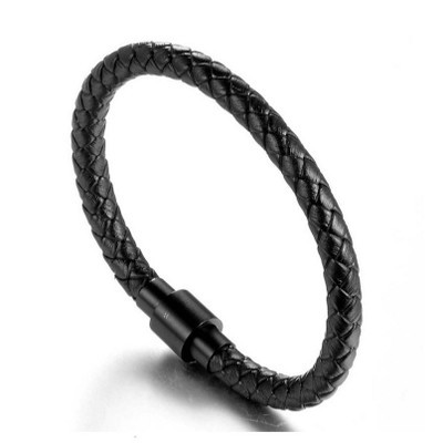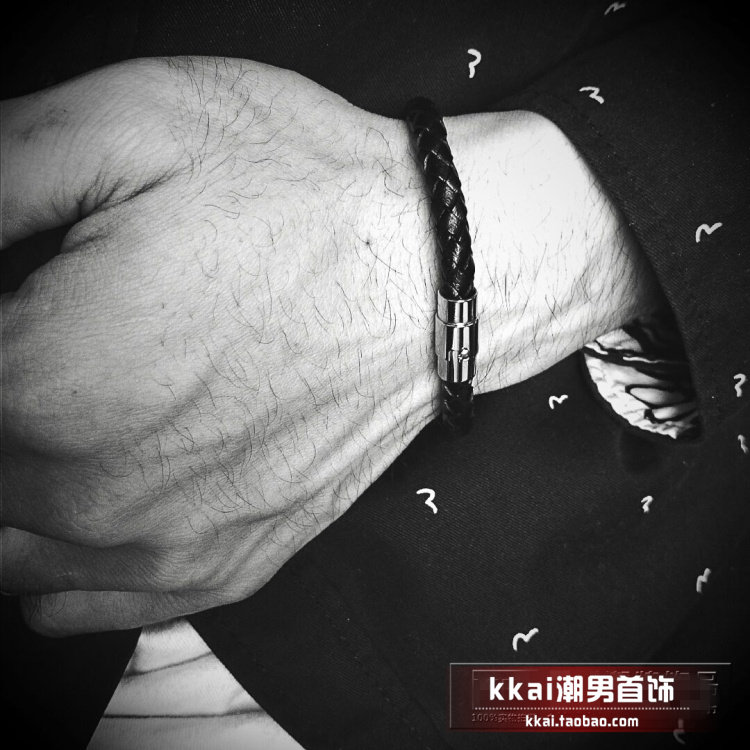 黑色牛皮磁卡扣首饰品男士手链手环个性简约韩版潮男编织学生手饰
