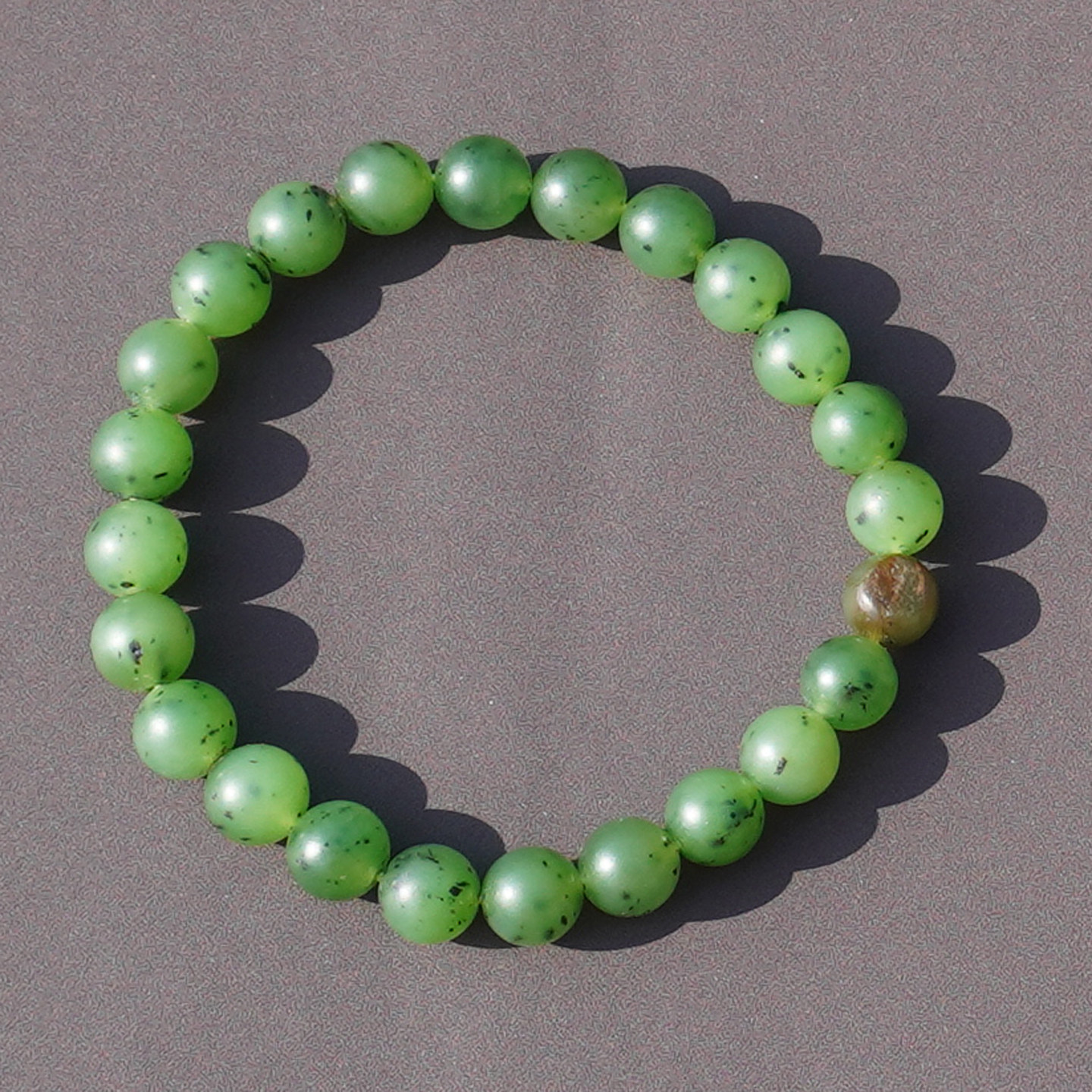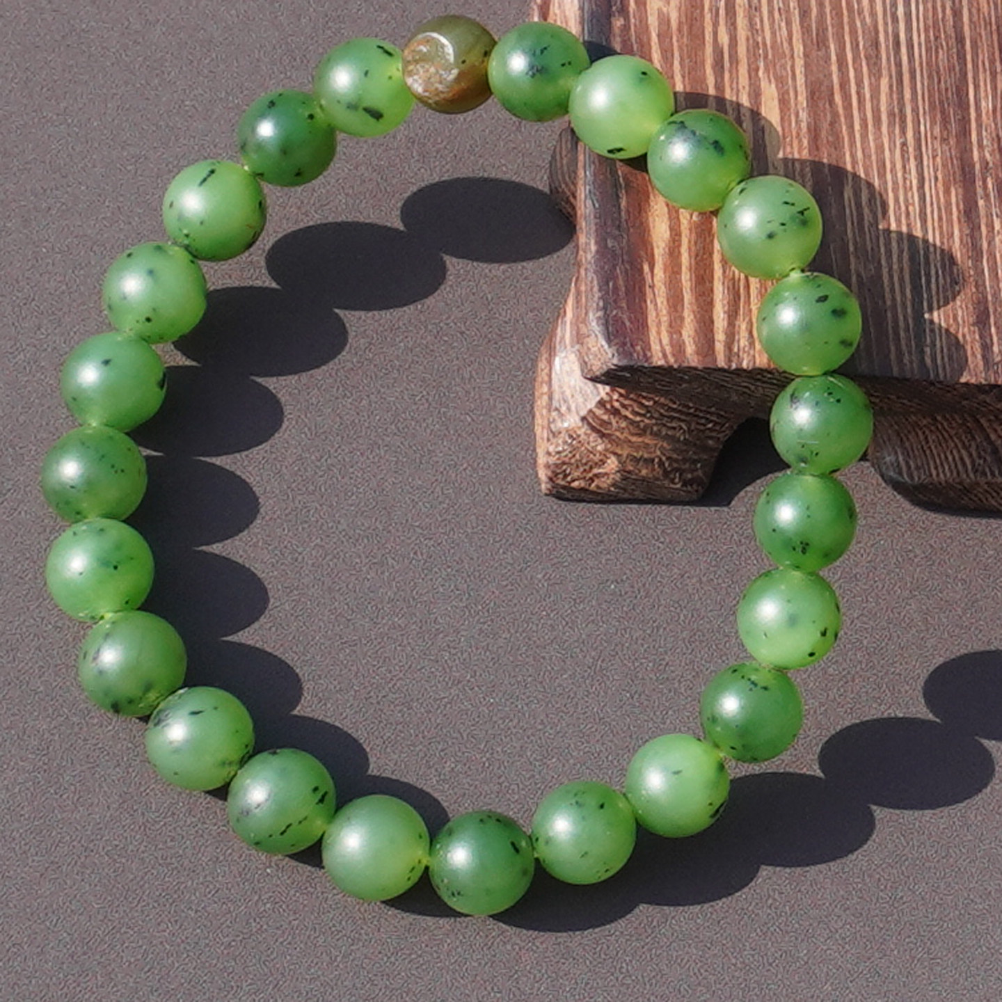 亏麻方言和田玉特色新疆黄沁皮阳绿色碧玉籽料8mm圆珠手串手链A6