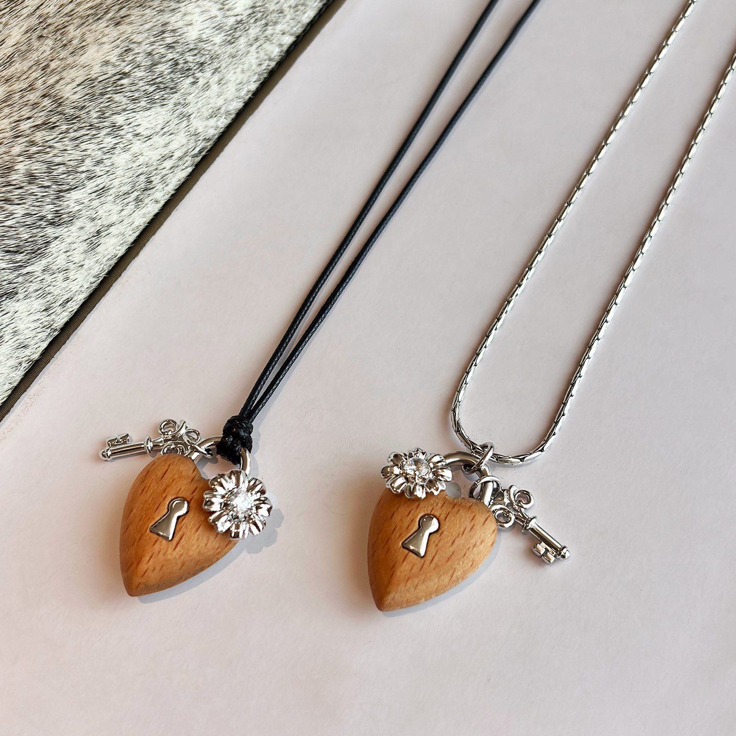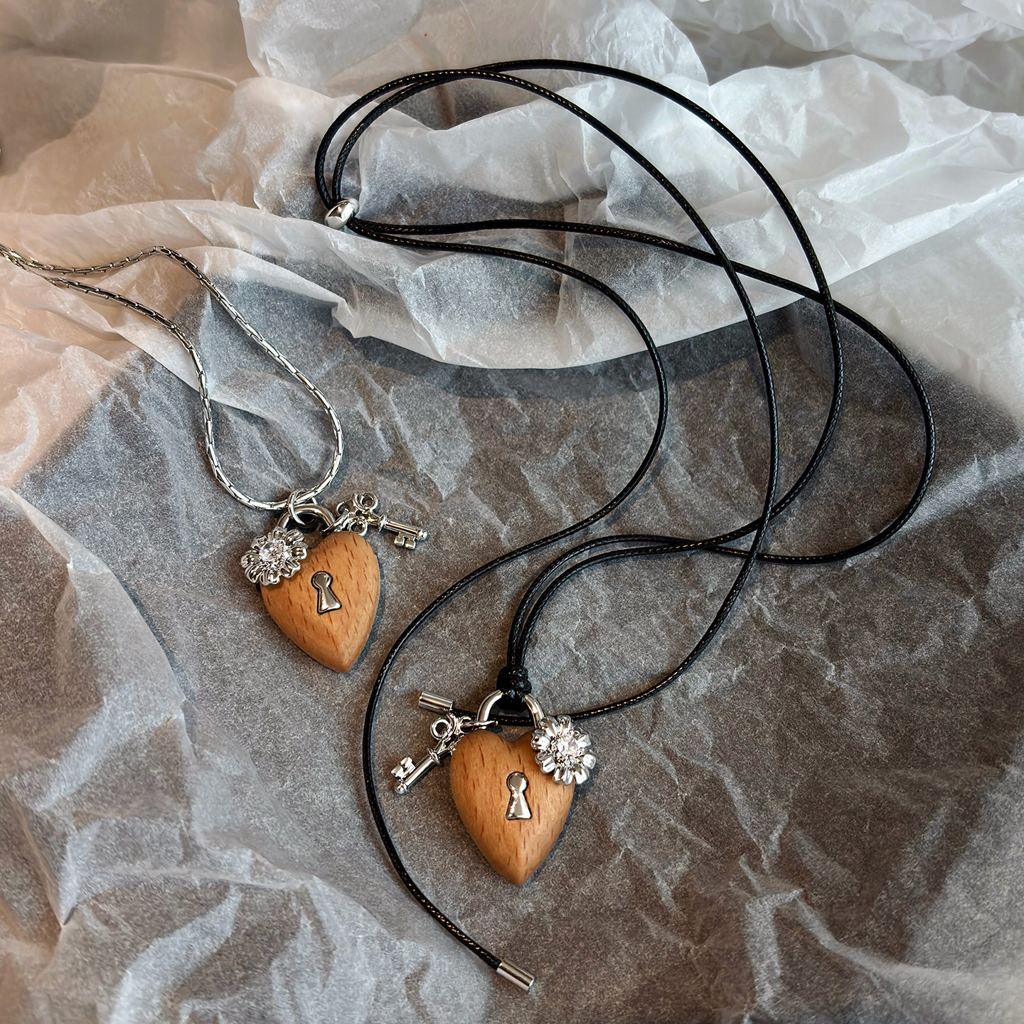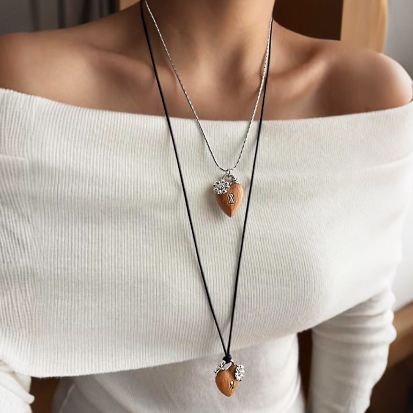 皮绳木质爱心吊坠毛衣项链女2026新款大气高档高级感黑色长款配饰