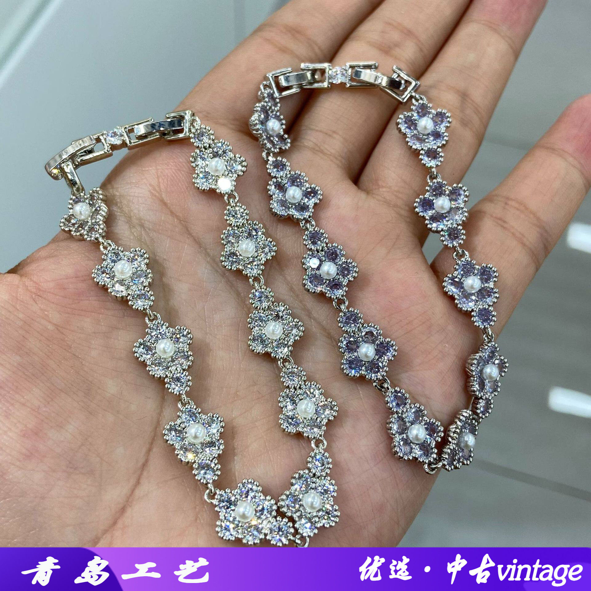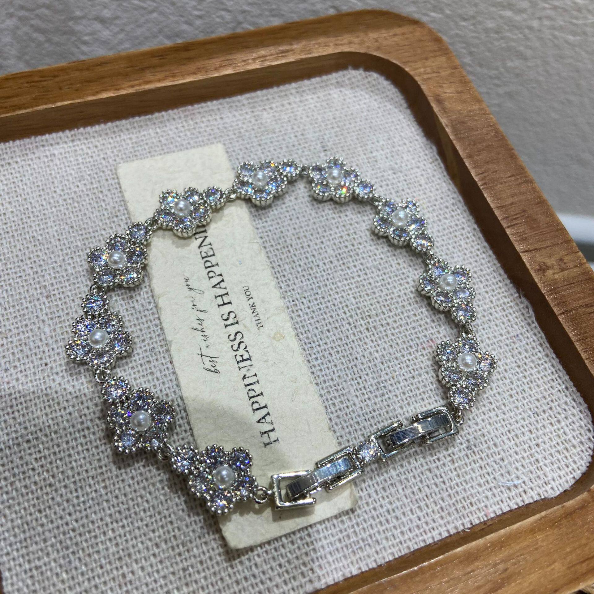 ins爆款跨境新品珠宝款花卉手链白色轻奢花朵设计感手环女