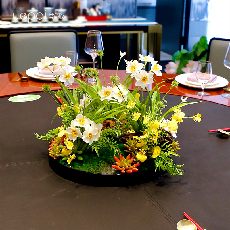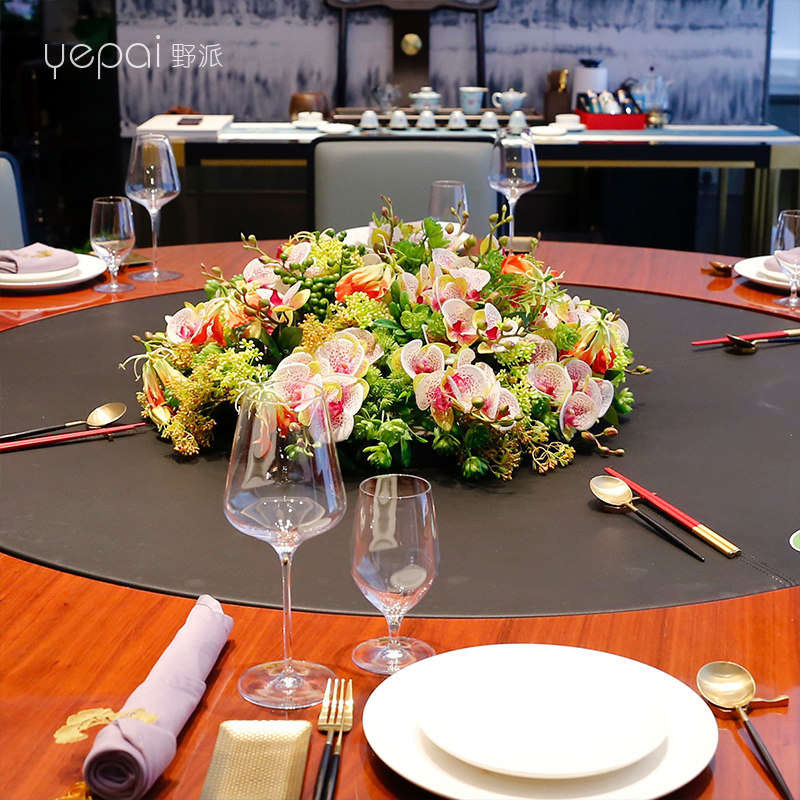 酒店圆桌中间高档摆花新中式荷花餐桌花包厢仿真花艺摆件高端假花