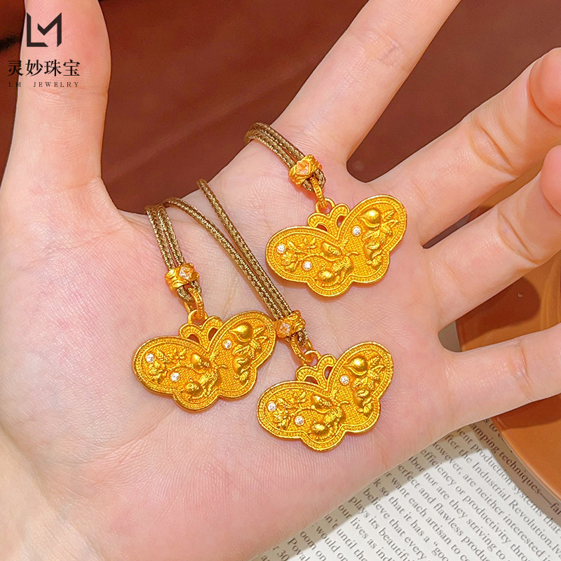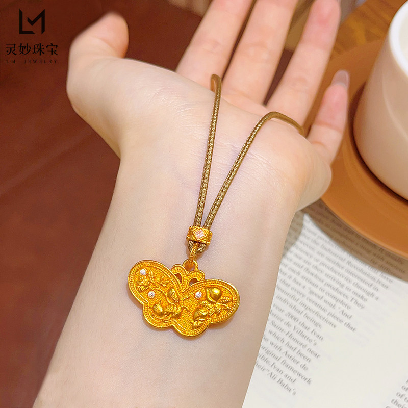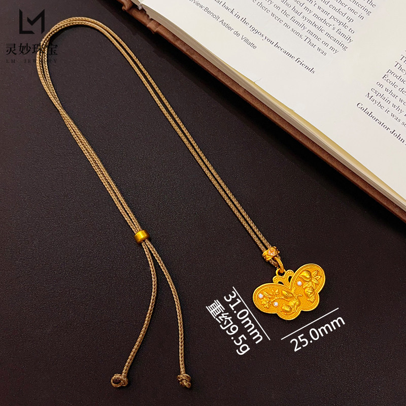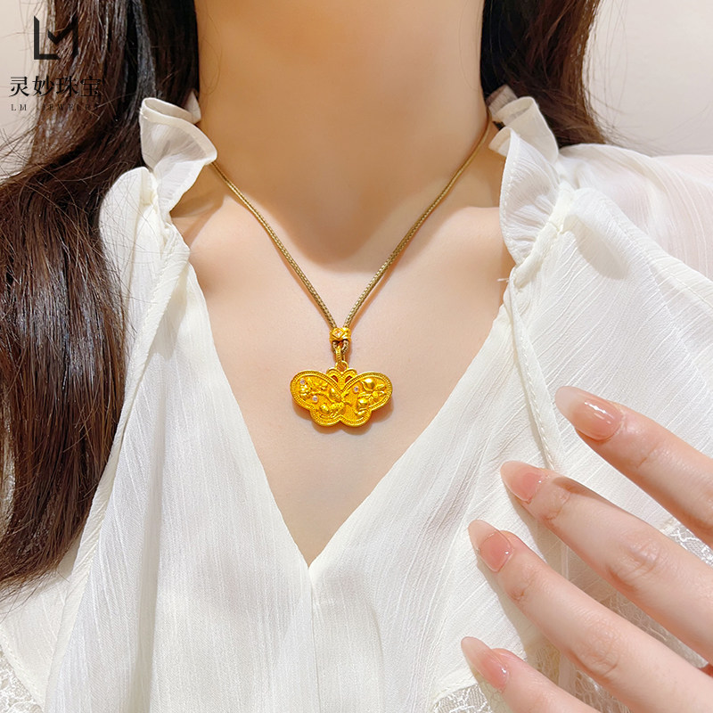 金店同款沙金花枝猫咪庄周梦蝶蝴蝶吊坠项链福运福蝶毛衣链送女友