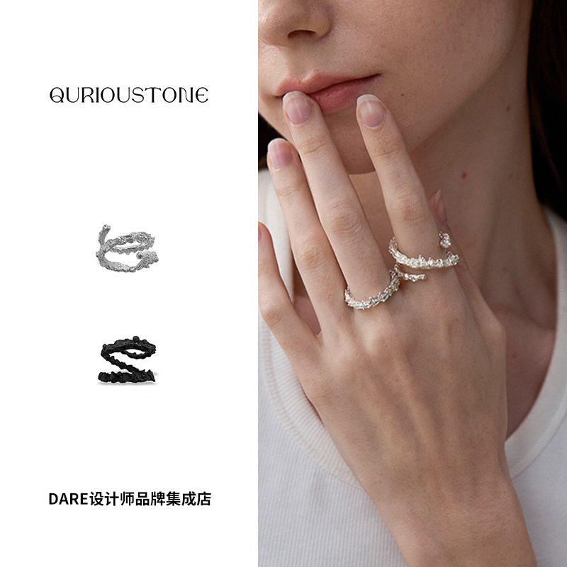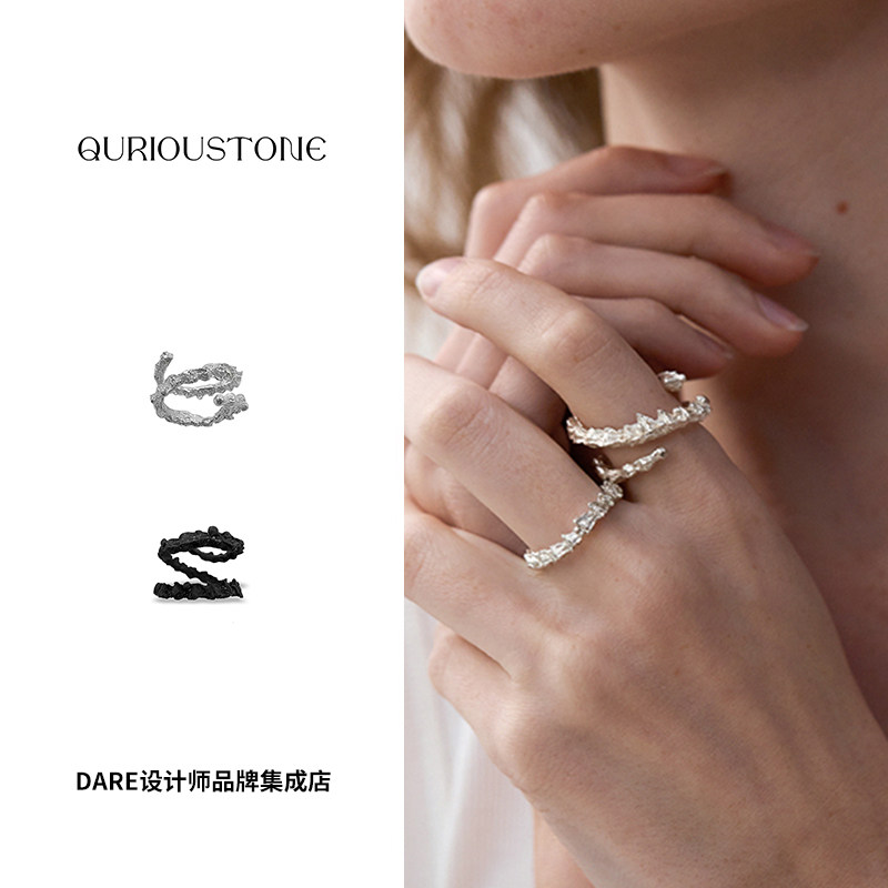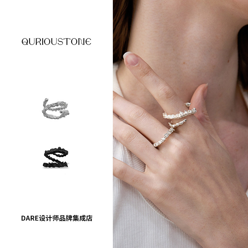 Dare买手店 qurioustone蛇骨双圈戒指纯银暗黑风肌理纹理手工饰品