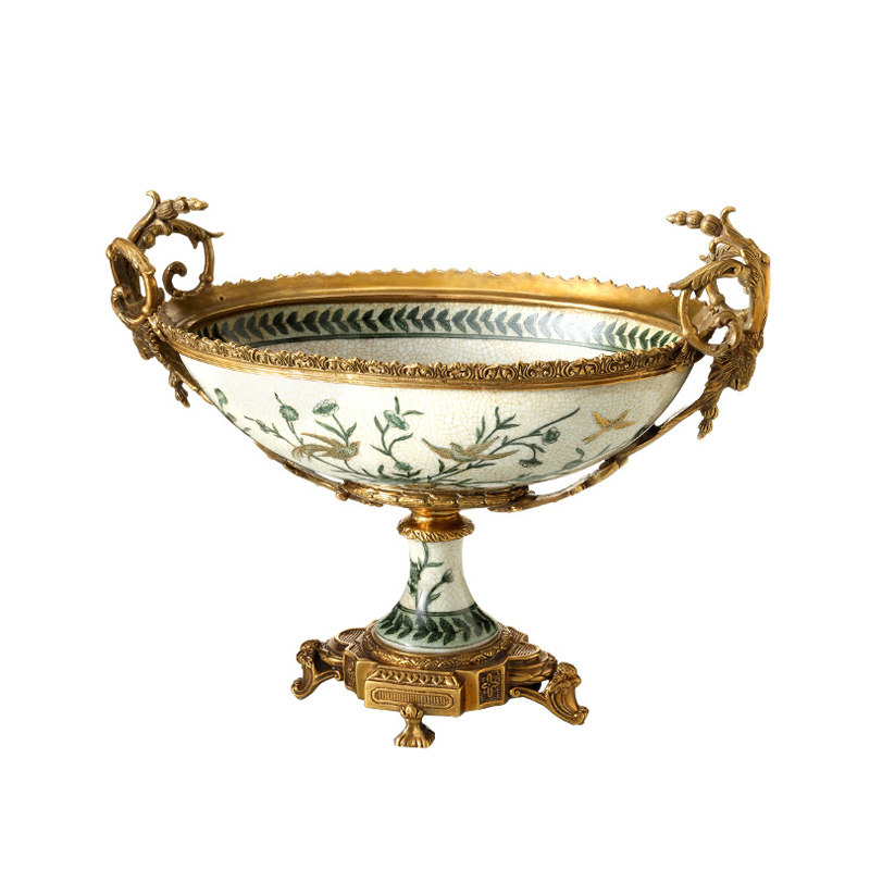 欧式家居饰品陶瓷镶铜客厅果盘纸巾盒装饰摆件餐U桌花瓶床头相框