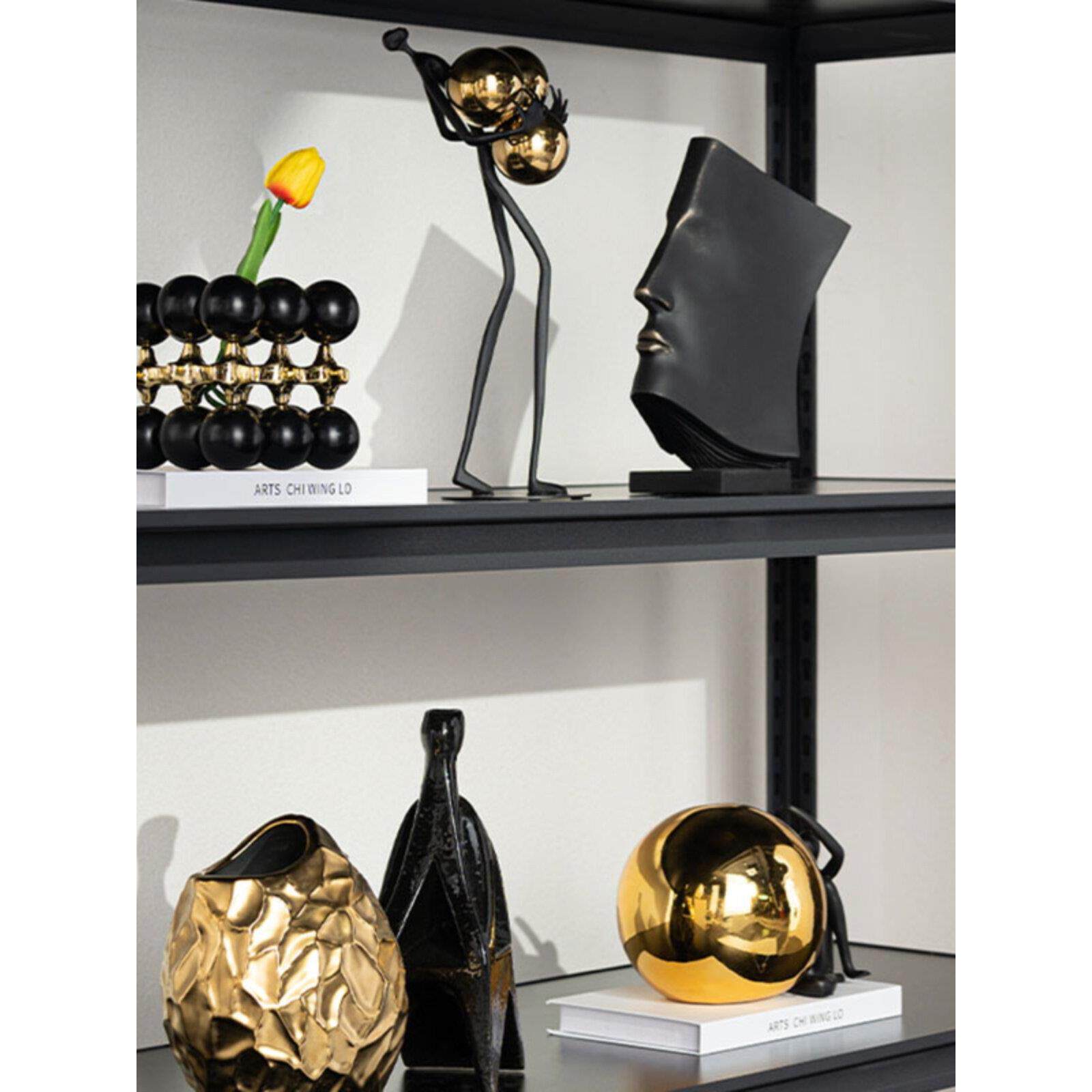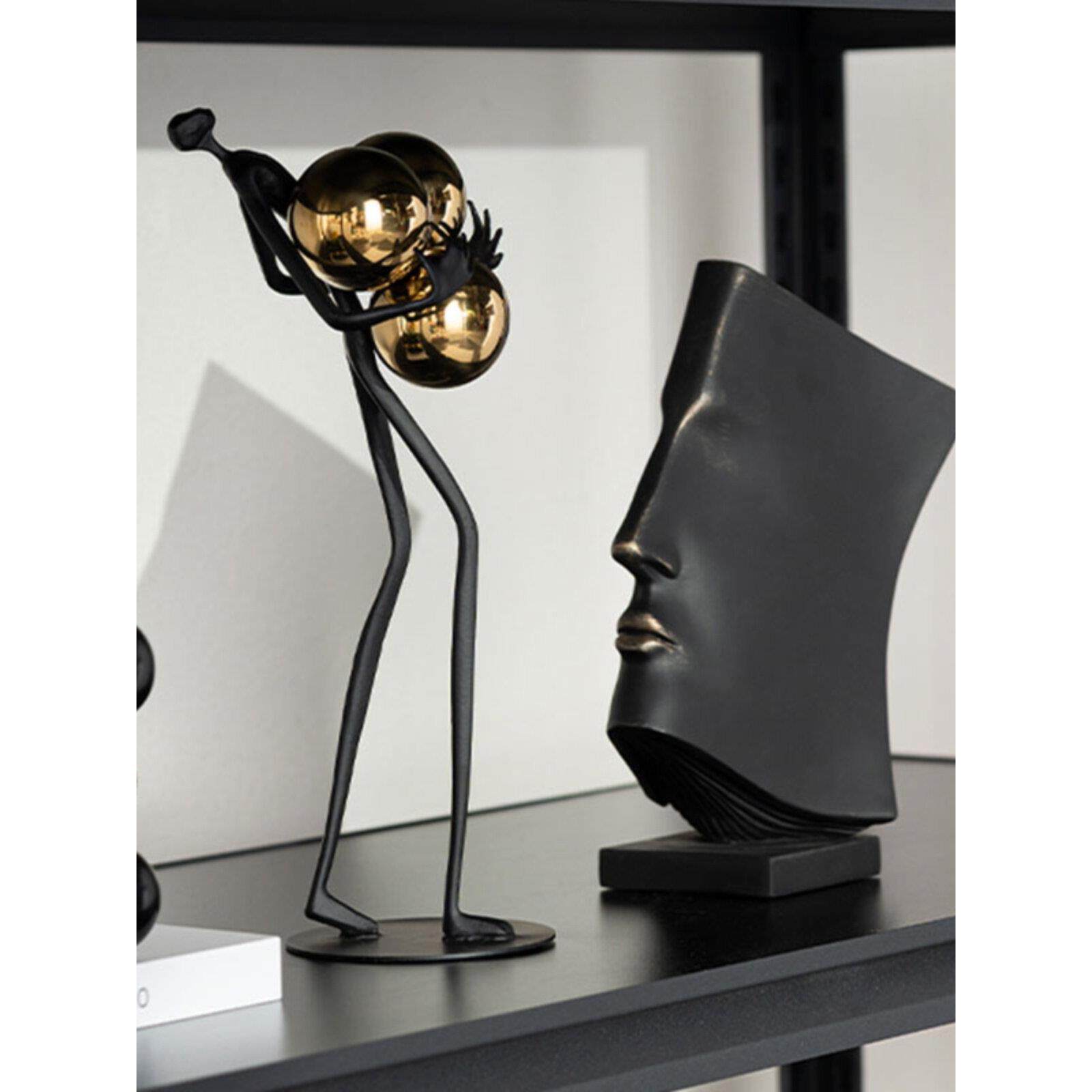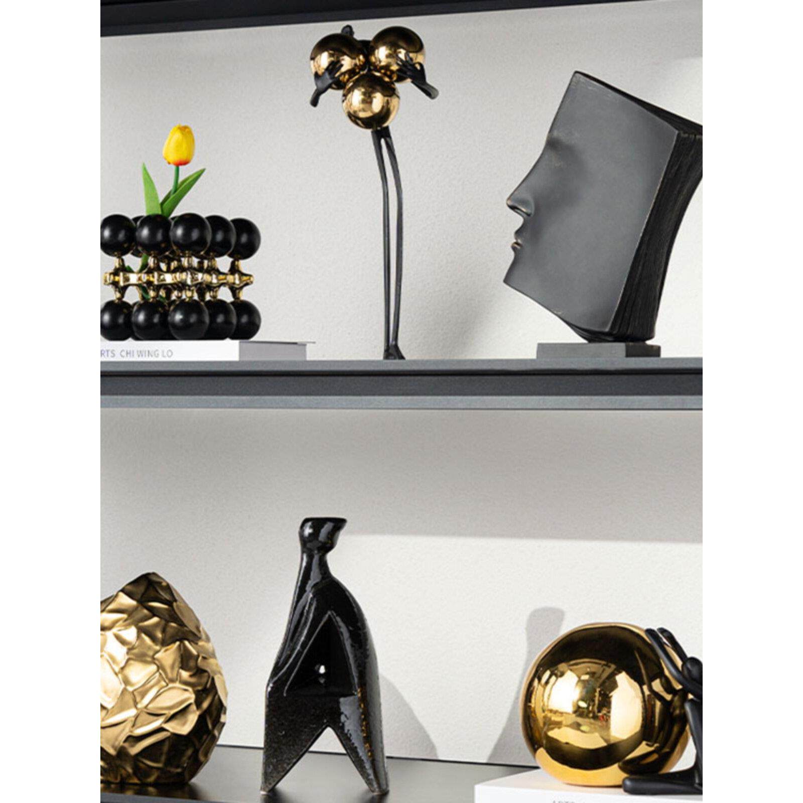 轻奢电视柜壁柜摆件黑金色插花器抽象艺术人物雕塑酒柜墙饰装饰品