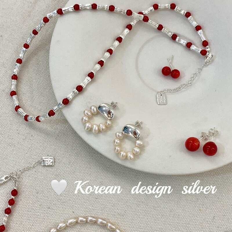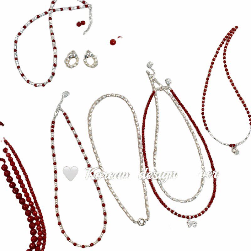韩国轻奢高级感锁骨链 S925纯银简约红色圆珠项链 圣诞新年单品女