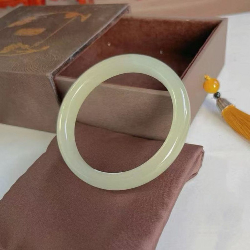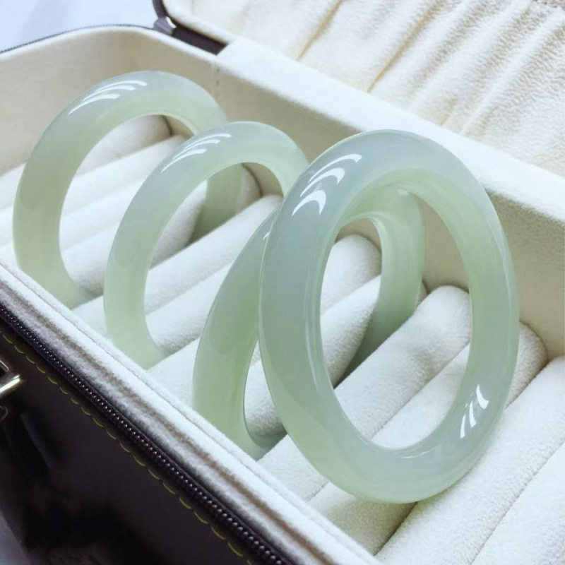 源头玉手镯女促销和田玉冰种玉手镯青白色晴水正圈玉镯情人节手镯