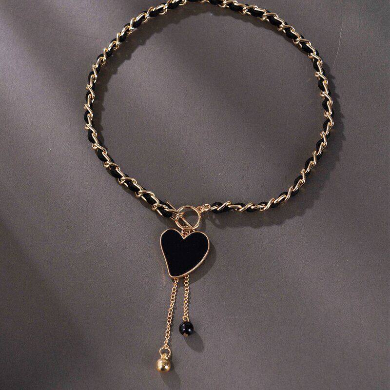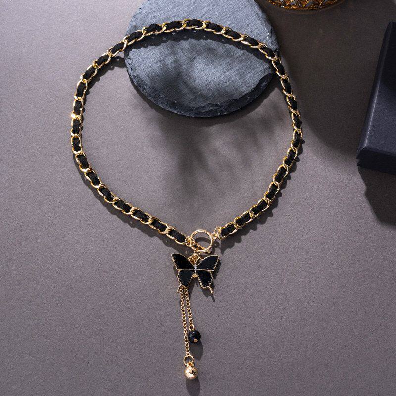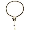 欧美跨境颈链饰品流苏绒布黑色缠绕蝴蝶结 choker 吊坠女项链锁骨