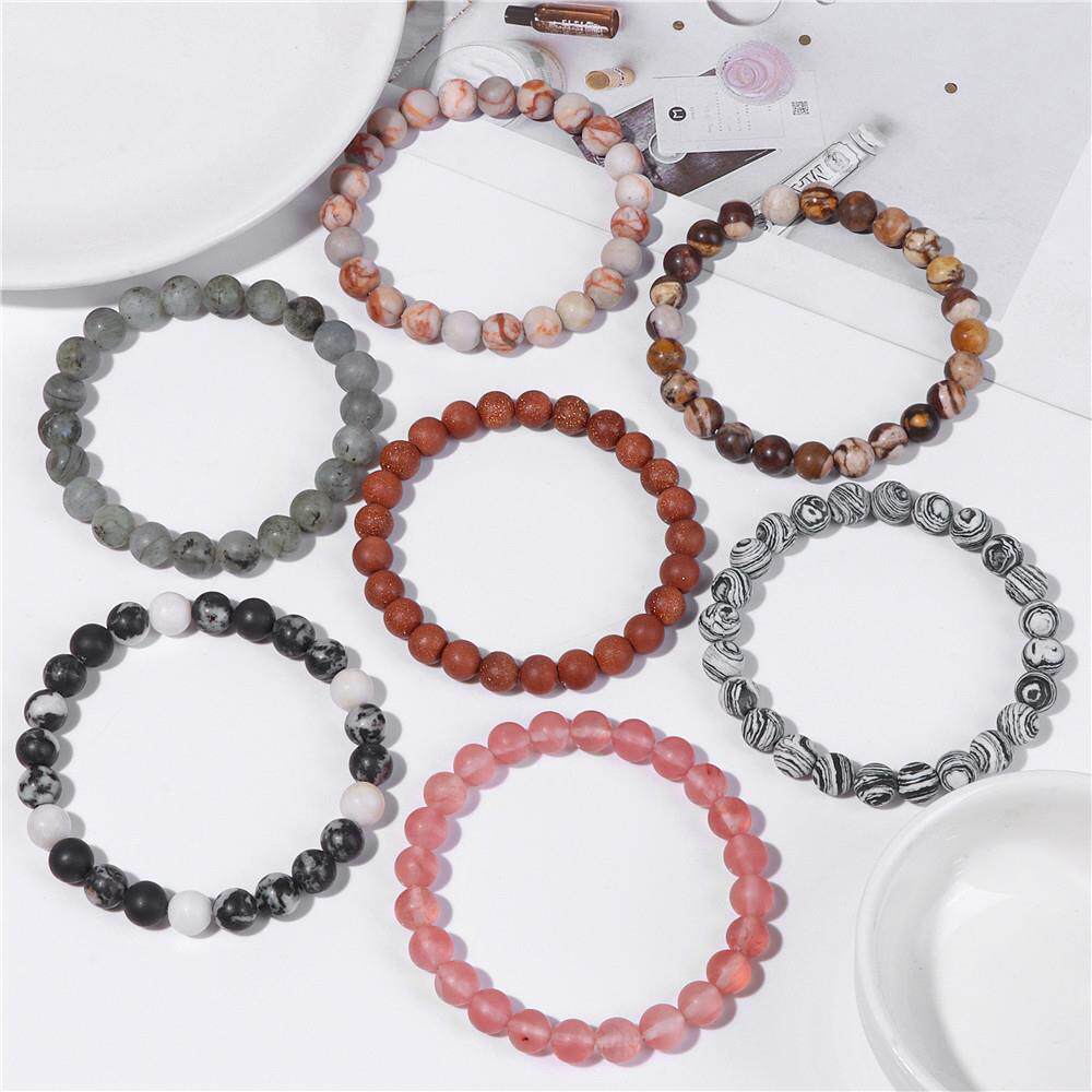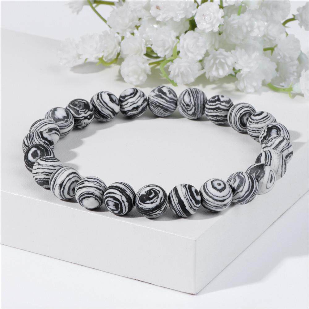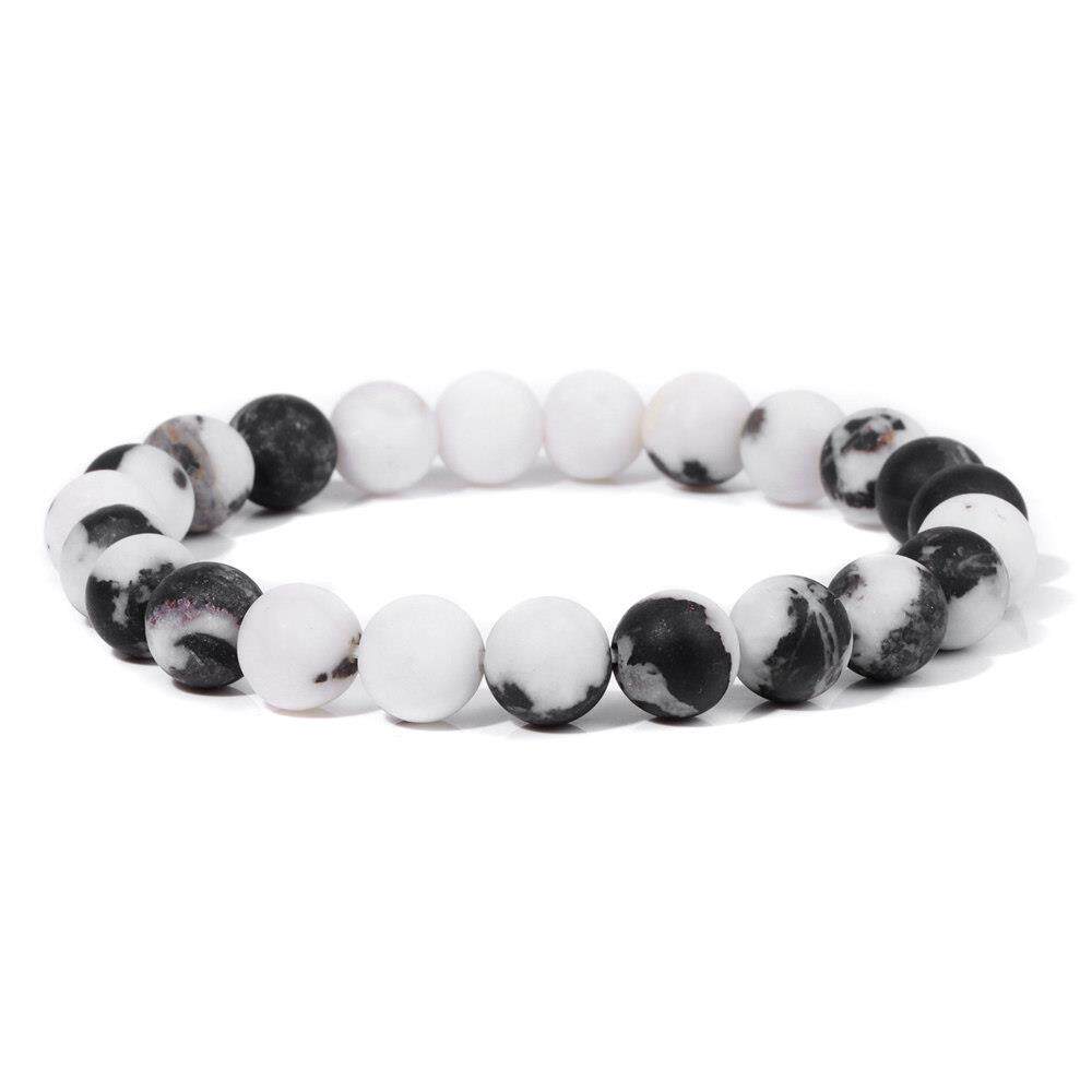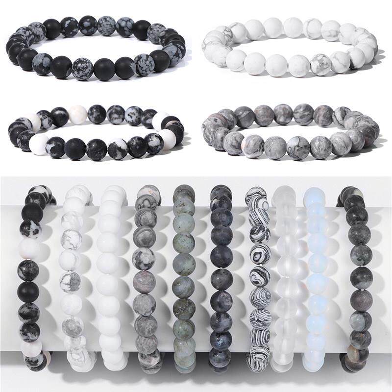 8mm Black White Natural Stone Bracelet Handmade Matte Opal