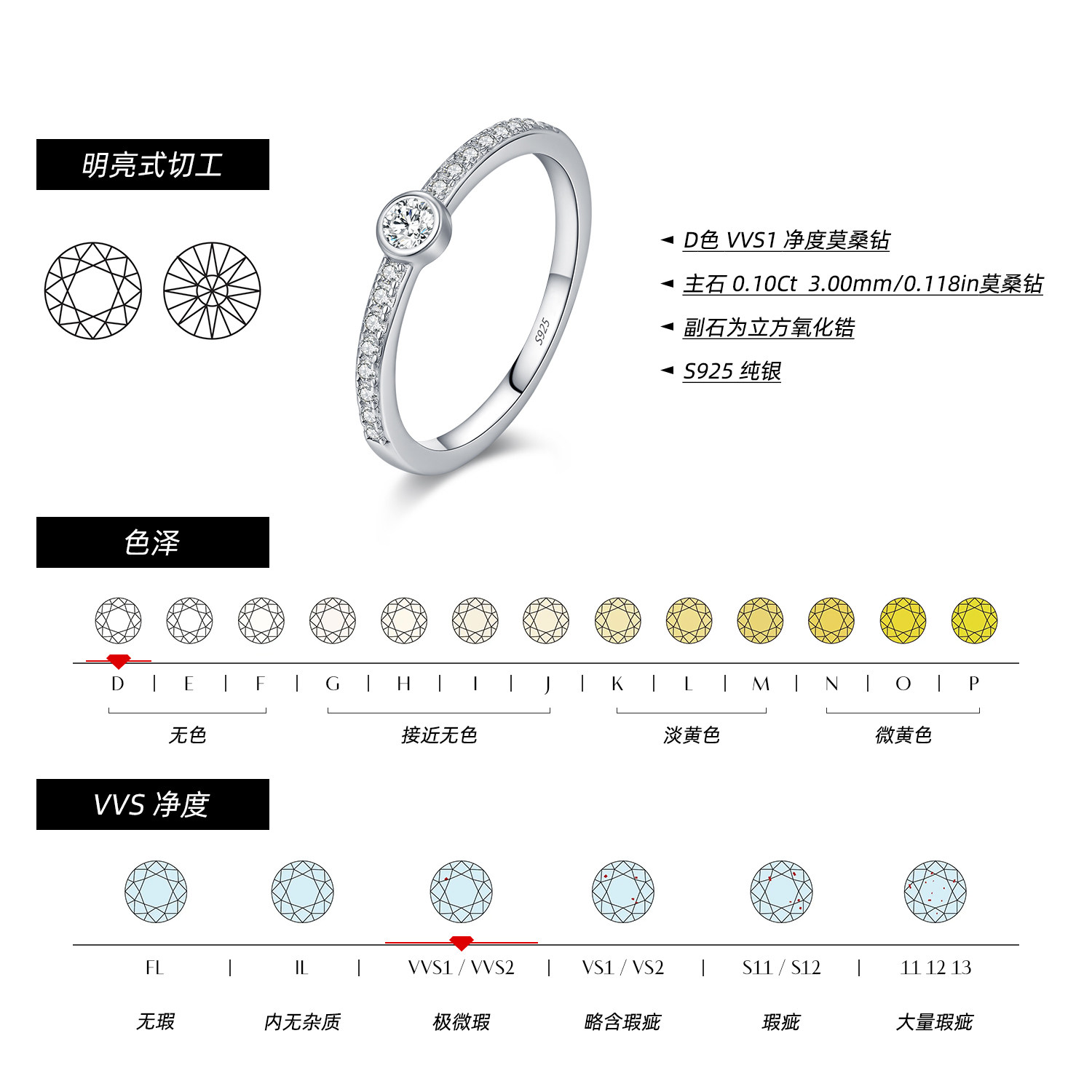 MODIAN摩典D色莫桑钻戒指女S925纯银轻奢泡泡闪钻少女感叠戴指环