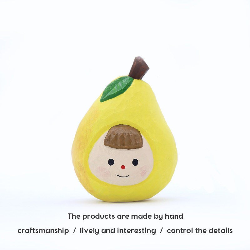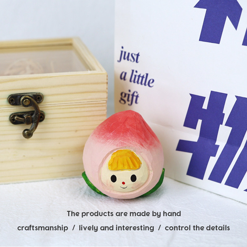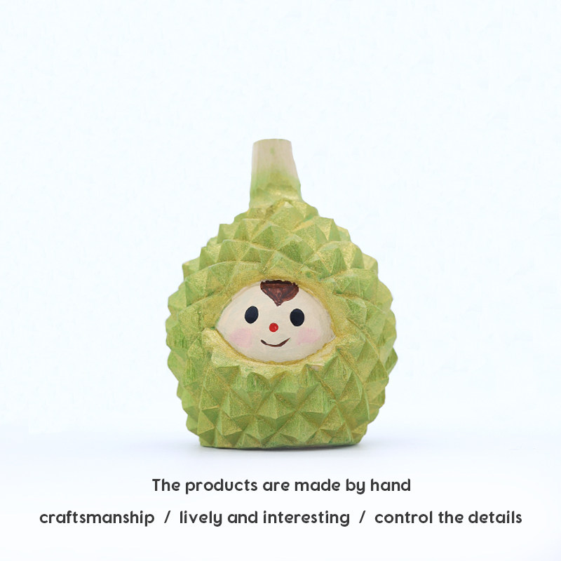 Jay家 手工木雕摆件 水果娃娃 榴莲水蜜桃可爱桌面生日礼物礼品
