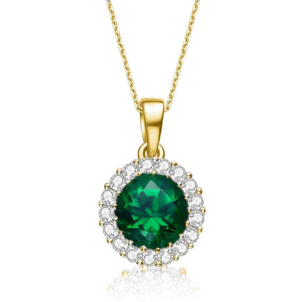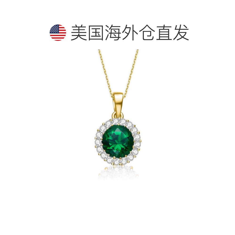 自营 geneviveC.z.纯银圆形吊坠 - 绿色 美国奥莱直发银饰