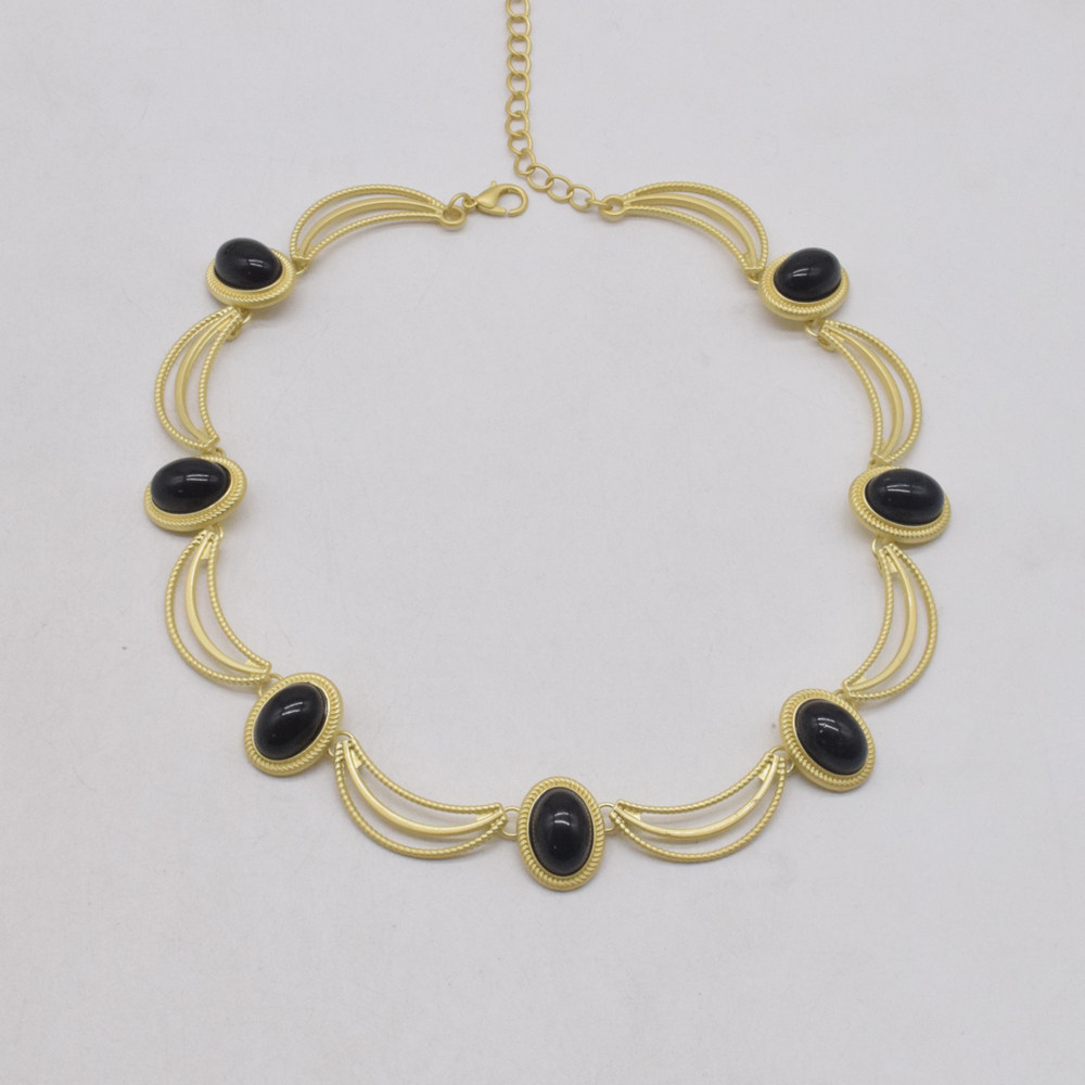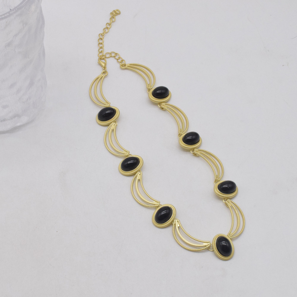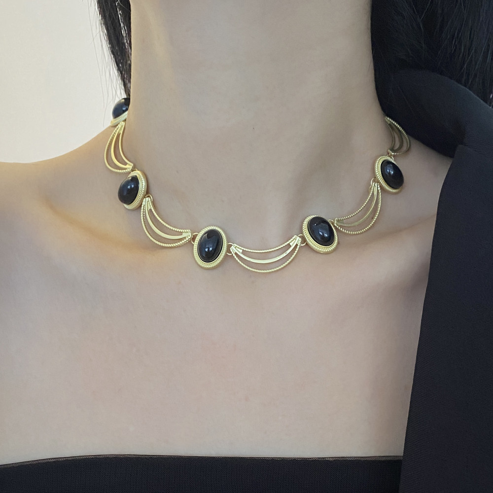 法式宫廷中古项链女椭圆黑色宝石多层锁骨颈链夸张气质个性毛衣链