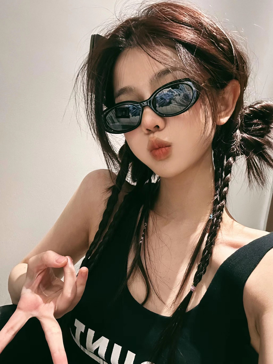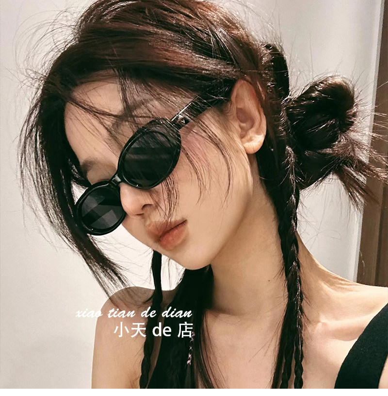 复古猫眼黑色辣妹欧美墨镜女高级感小脸防紫外线星星太阳眼镜造型