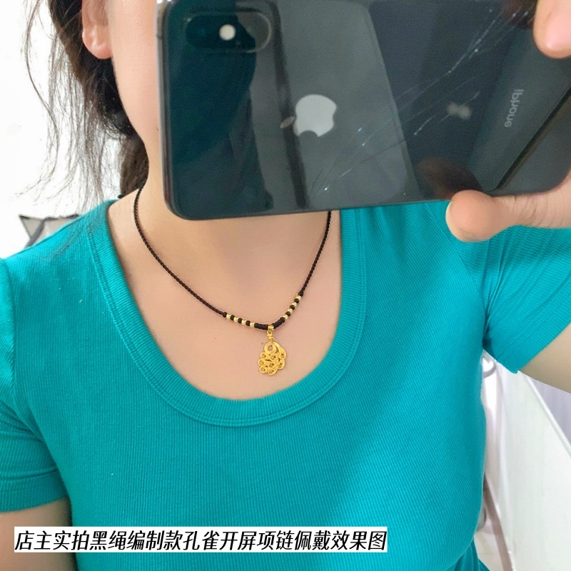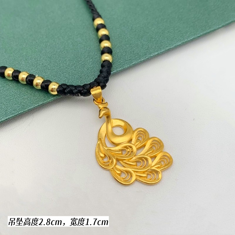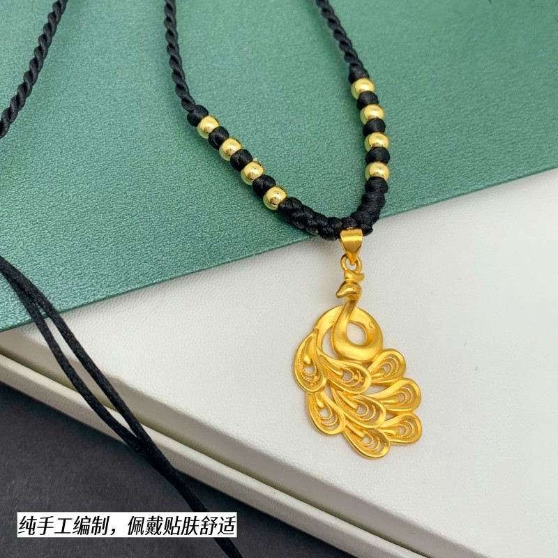 久不掉色纯手工编制黑绳项链女黄合金孔雀越南沙金时尚凤凰吊坠
