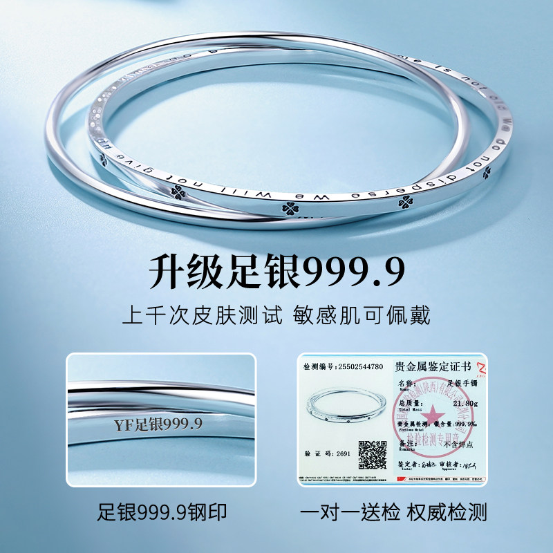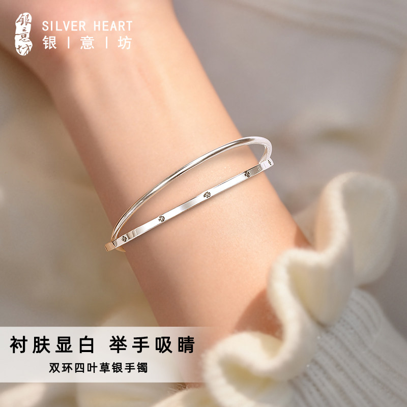 银手镯女9999纯银双环银手镯叠戴2026新款实心款银镯子女神节礼物
