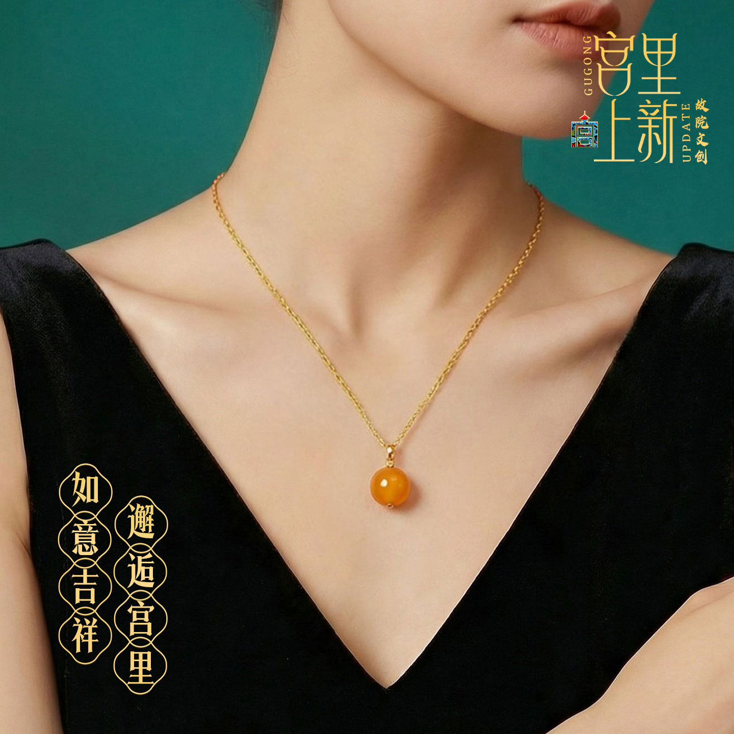 宫里上新蜜蜡吊坠项链正品女士天然琥珀黄色锁骨链送妈妈生日礼物