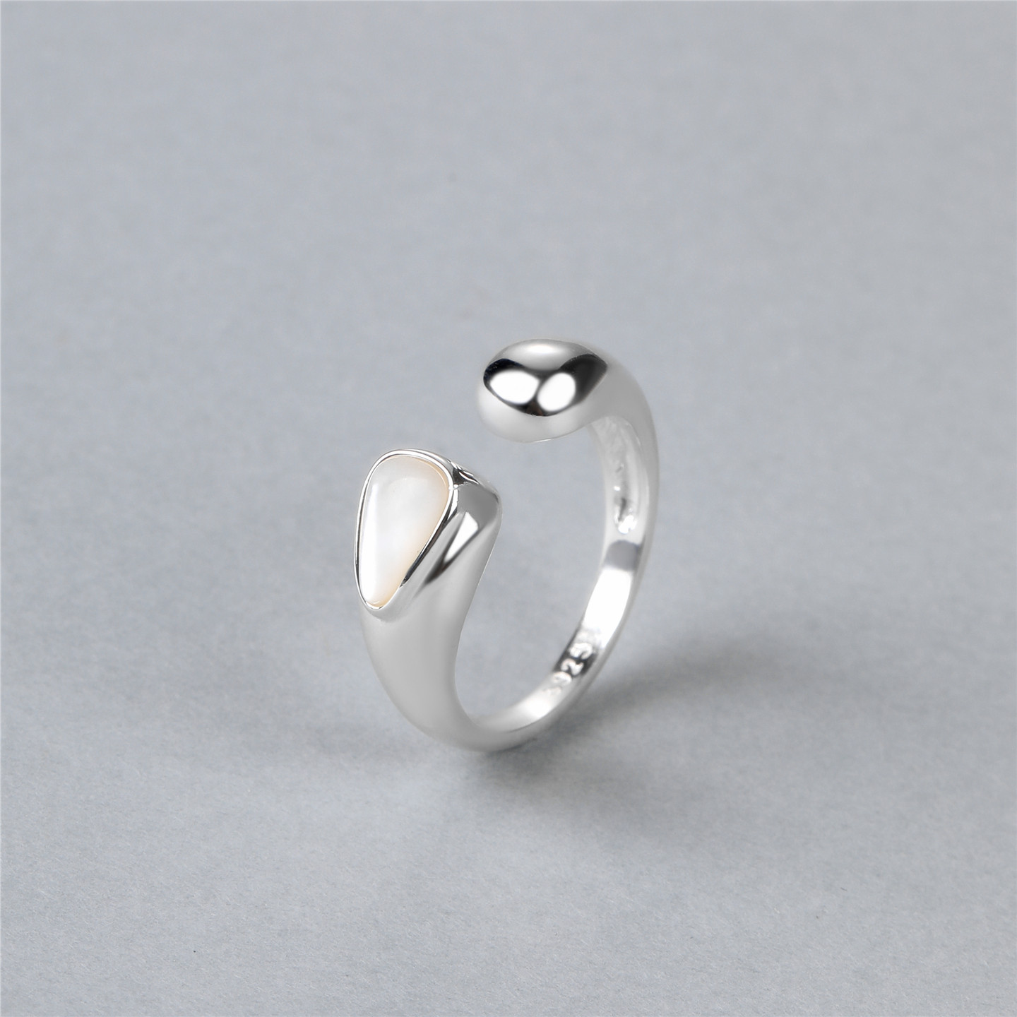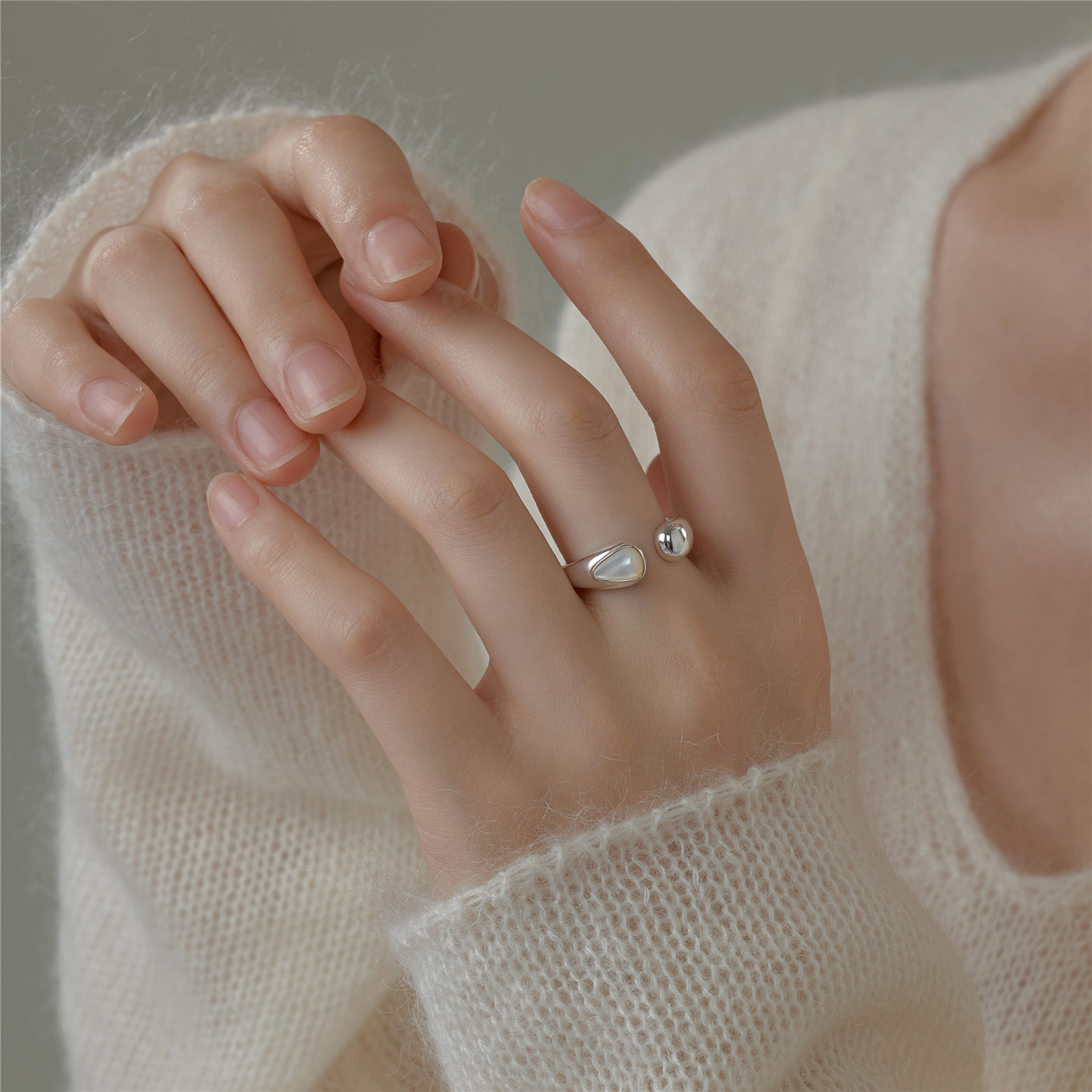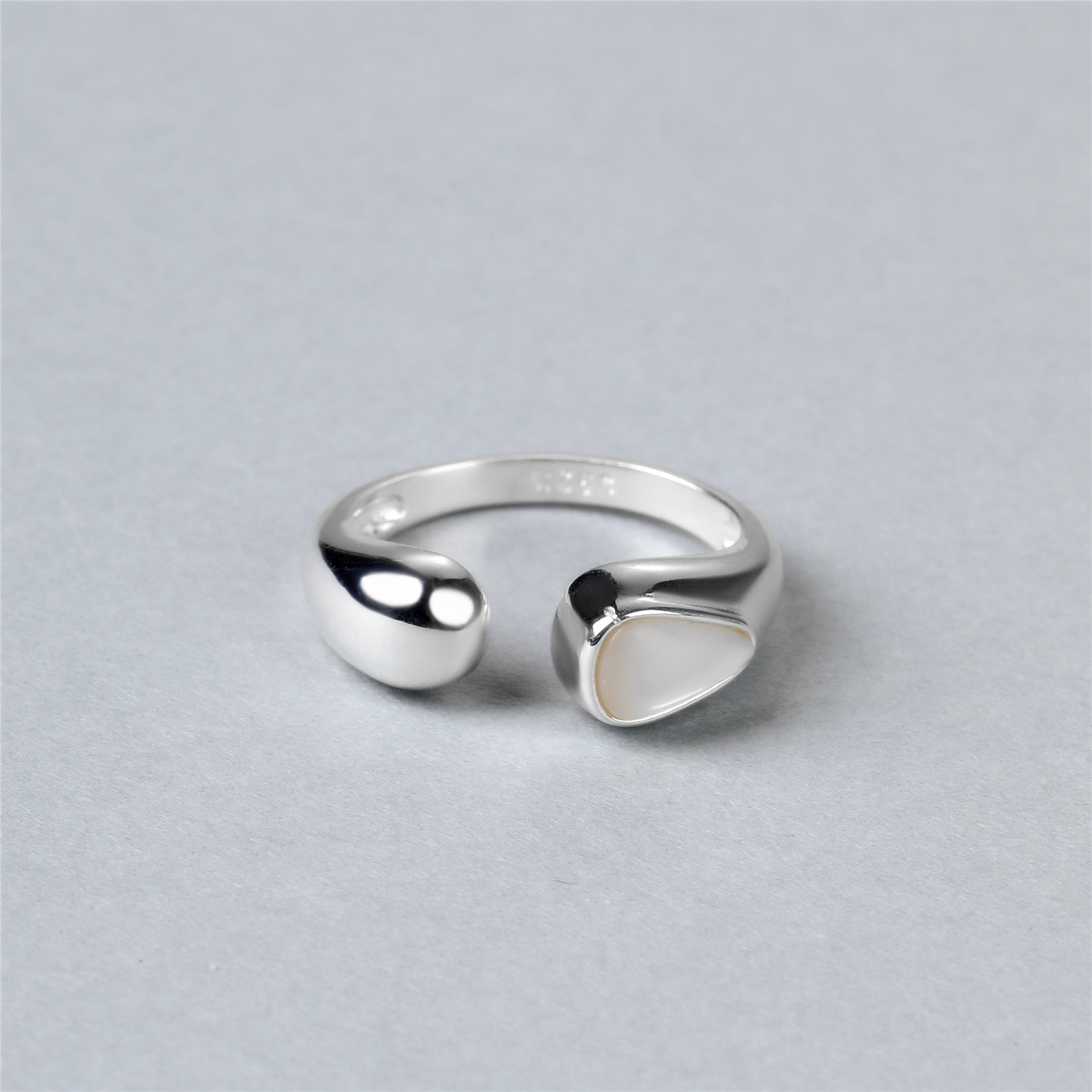 梵灵小众设计款天然母贝月光开口戒指女S925银简约双层叠戴指环