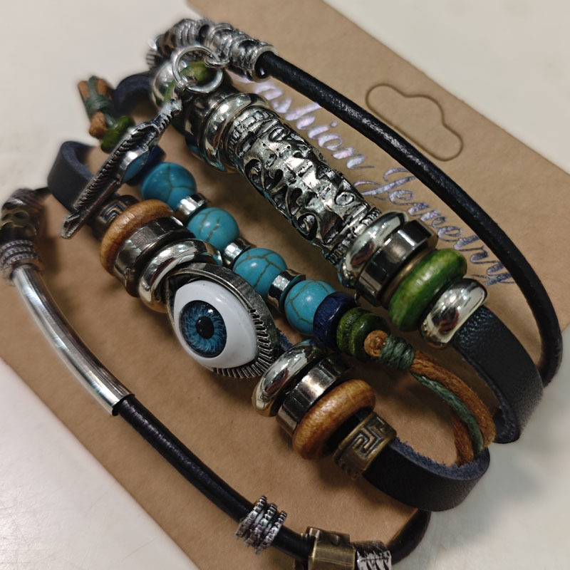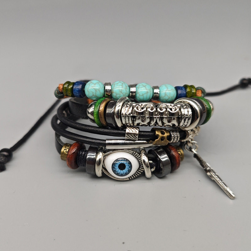 蓝色眼睛手链复古民族风皮革编织多层百搭异域风情侣闺蜜欧美可调