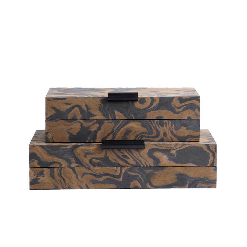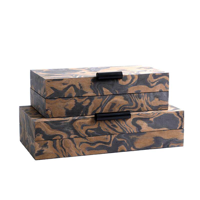 新中式实木木皮祥云图案收纳盒摆件样板间售楼处客厅书柜装饰