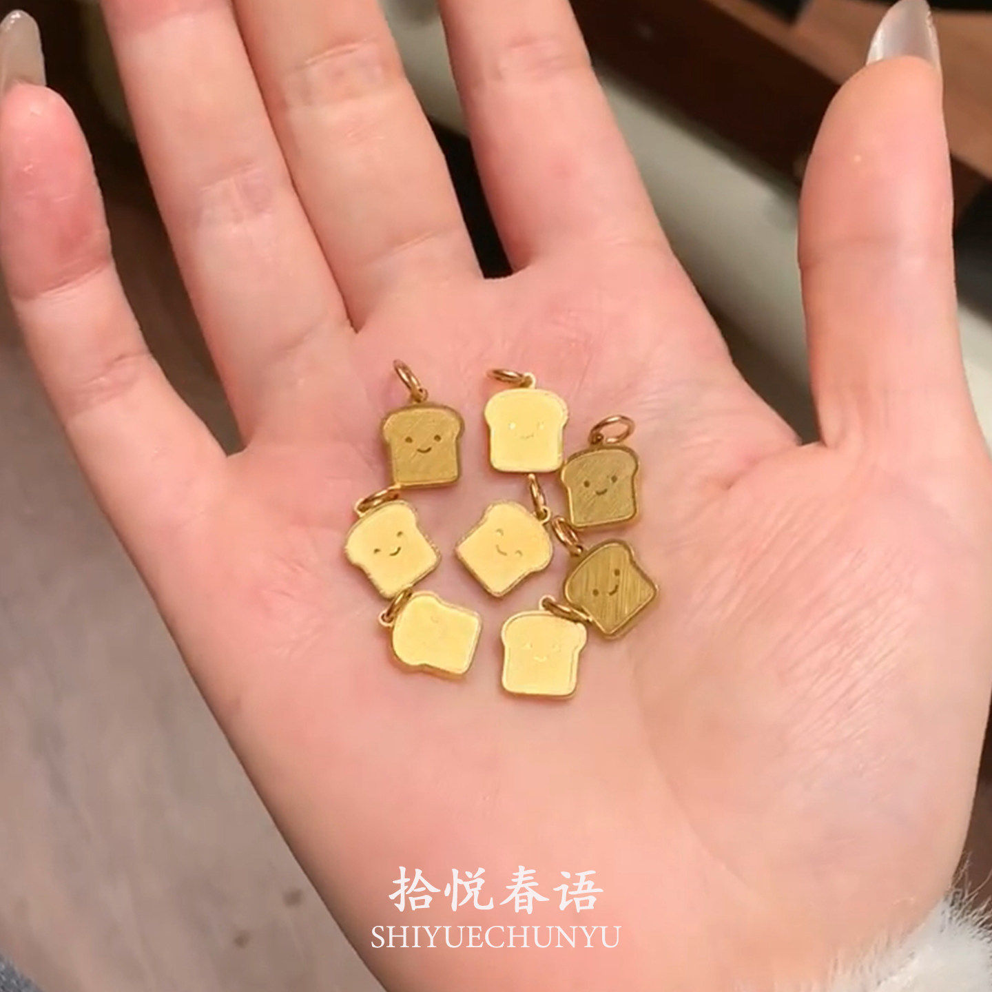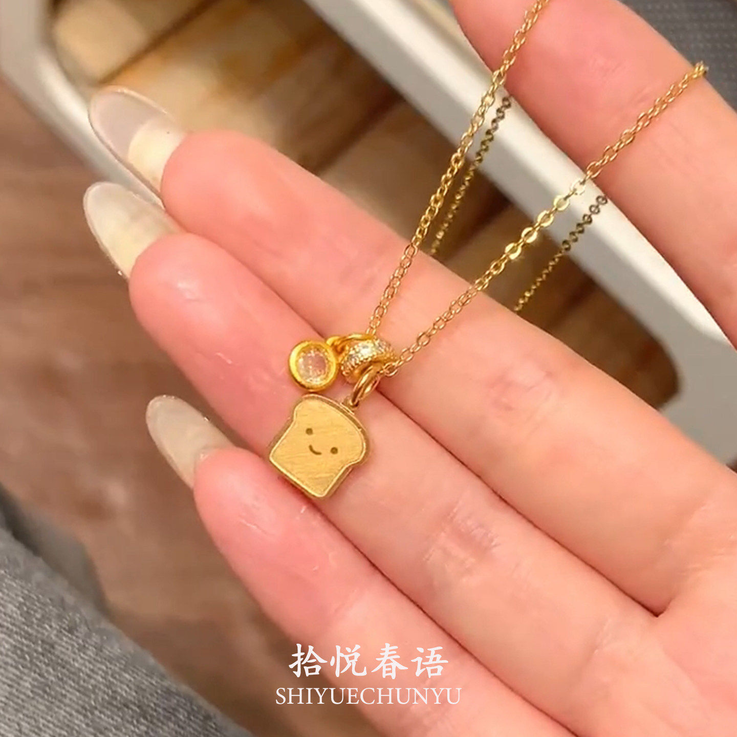 酥语甜梦~S925纯银金色微笑吐司跑环项链女高级感轻奢小众锁骨链