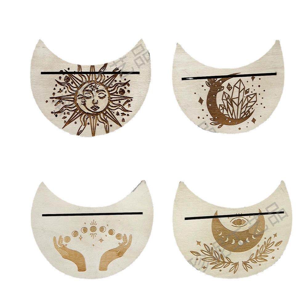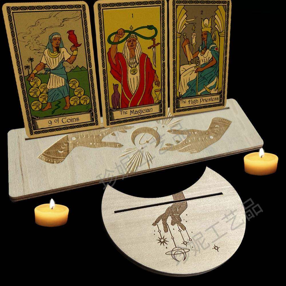 月亮形木质座展1示架塔罗牌木制底座架矩形展示架支件工底摆艺魔