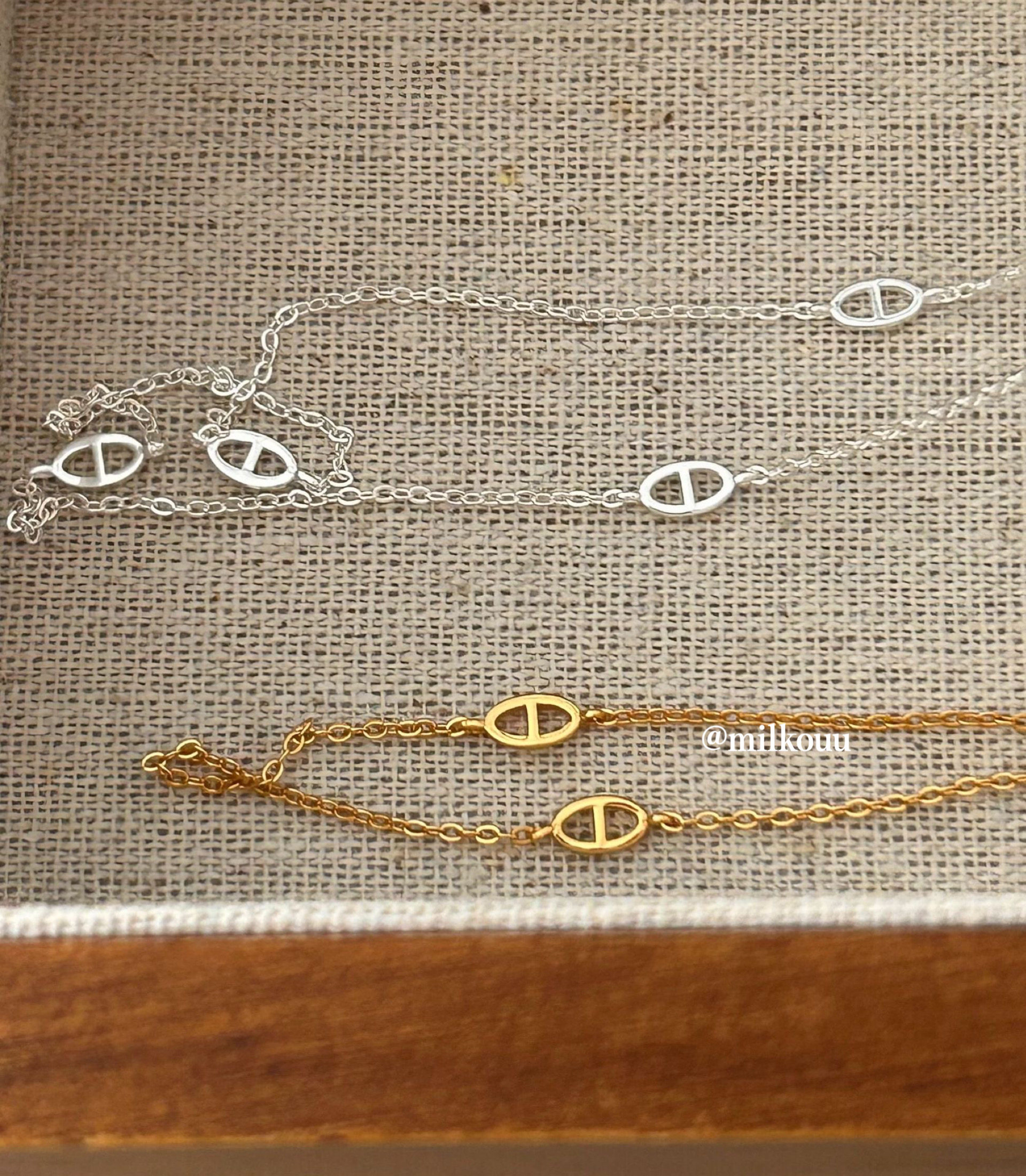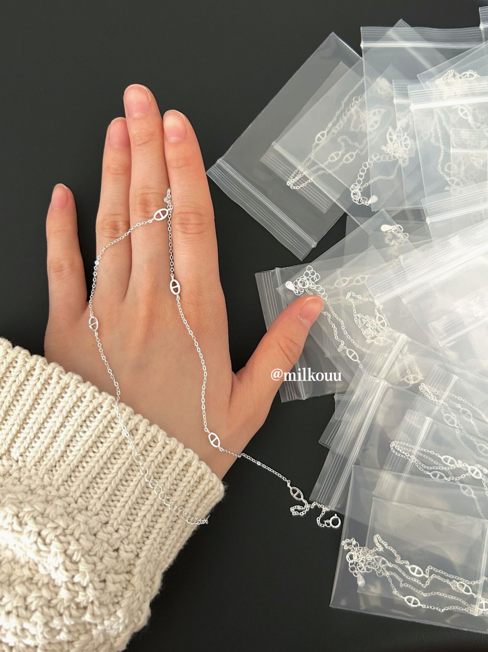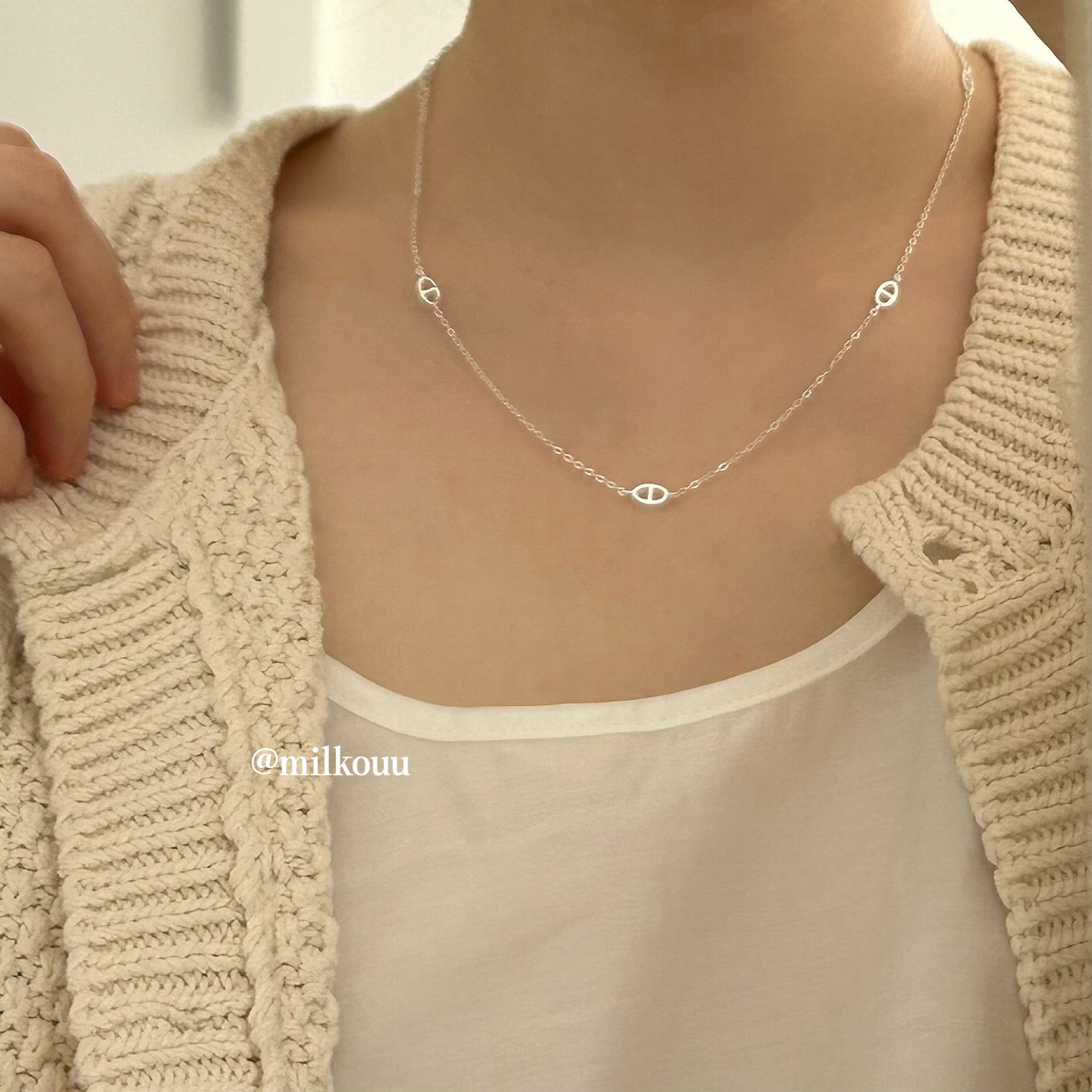 韩国925s通体银 简约高级感极细锁骨链百搭叠戴经典猪鼻子项链