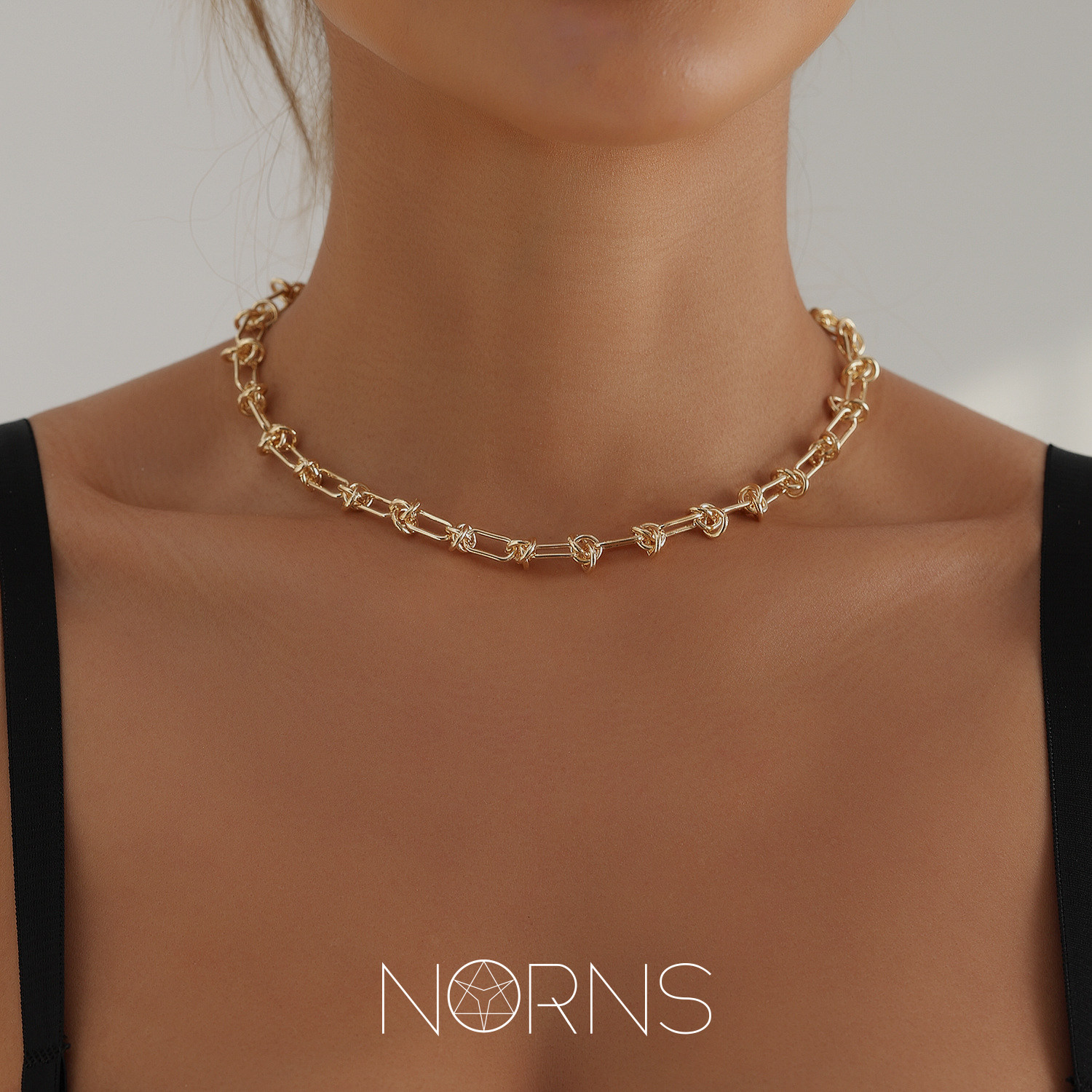 Norns欧美设计感时尚金属打结缠绕U型拼接项链设计感锁骨链手链