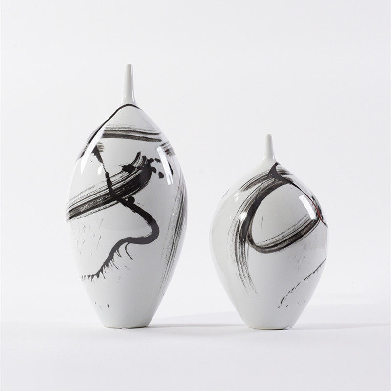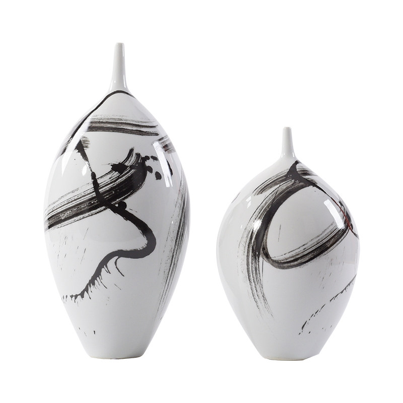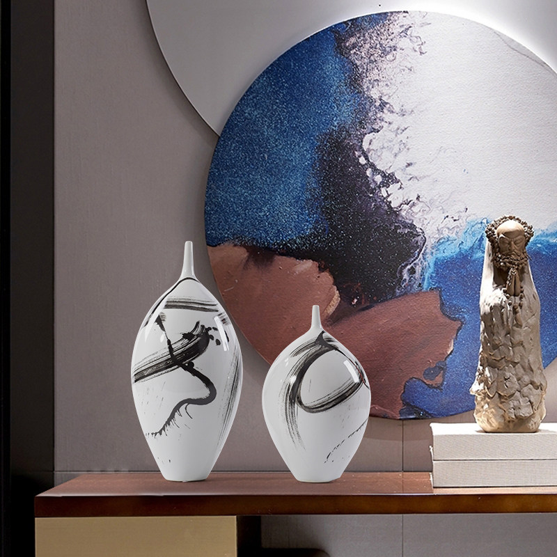 极速新中式陶瓷白色花瓶细口w样板房软装摆件简美酒店售楼处花器