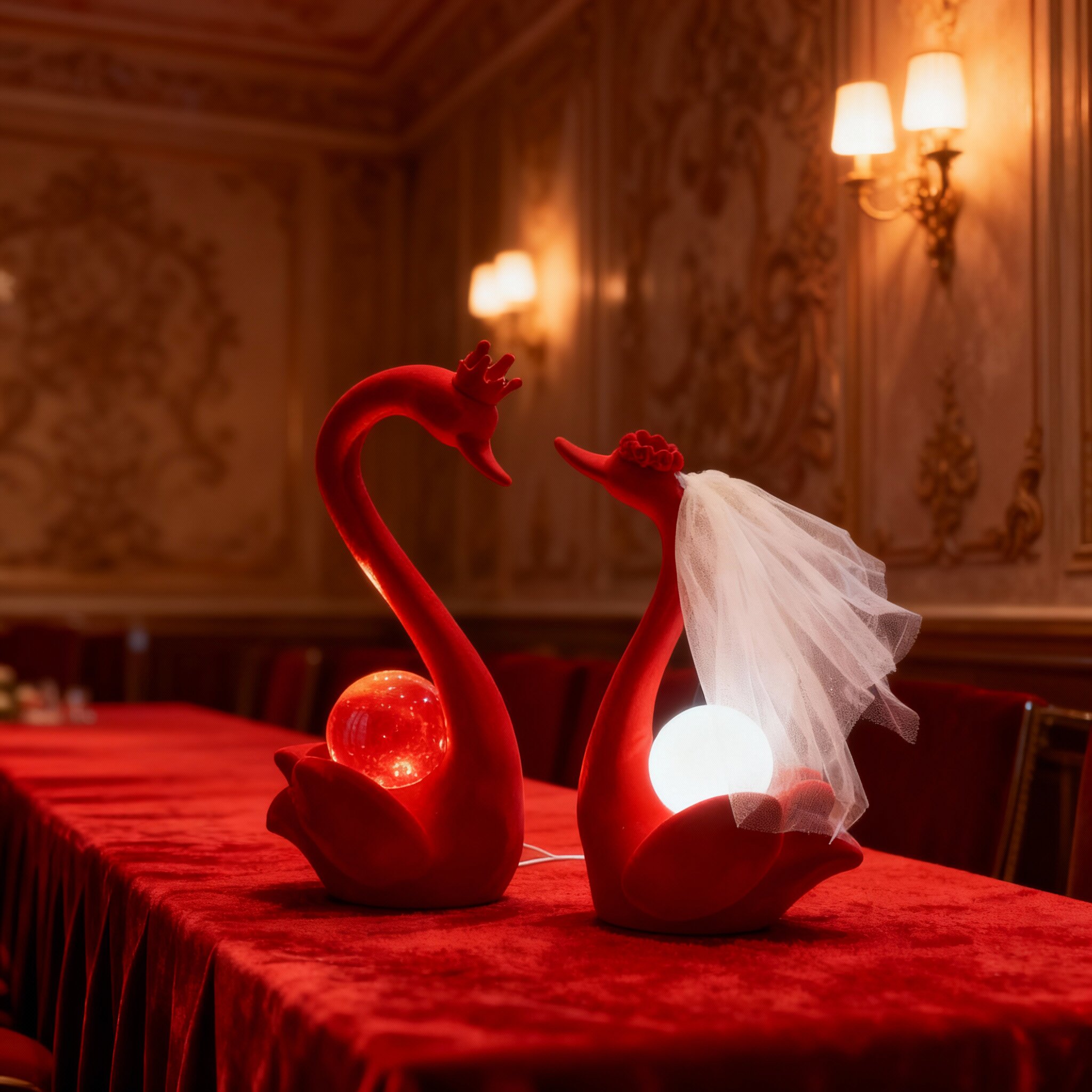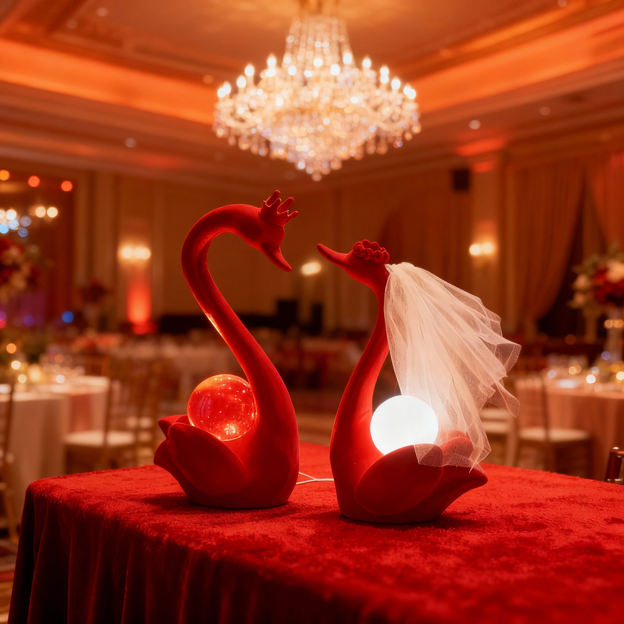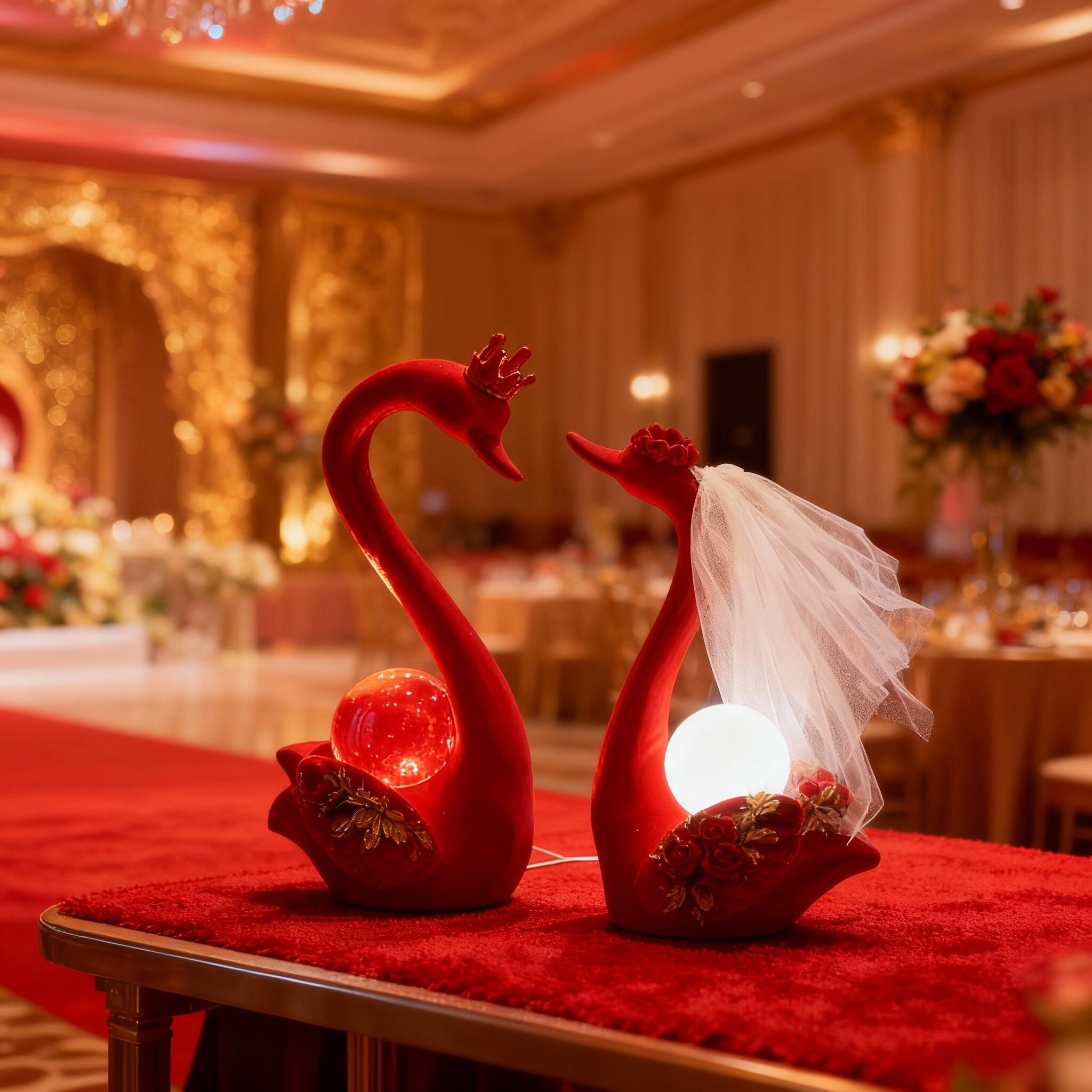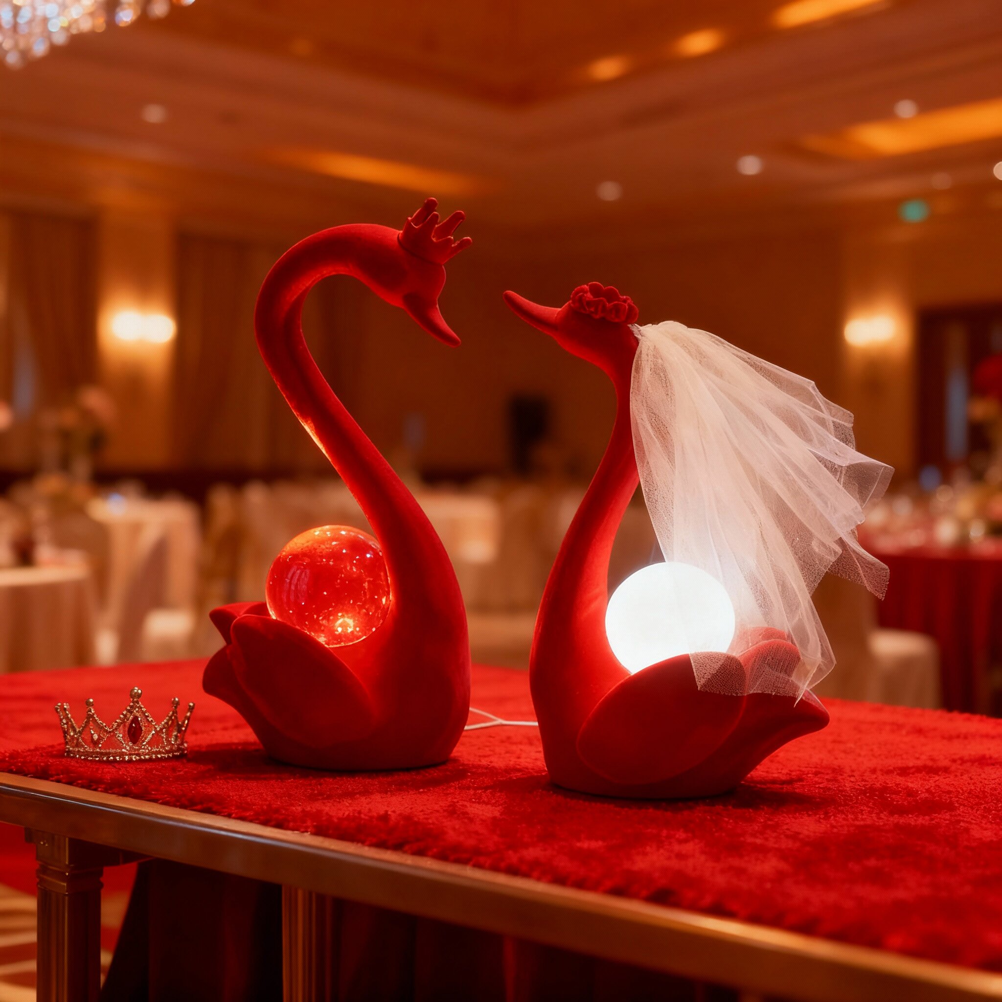 红色天鹅造型台灯婚庆装饰摆件结婚用品创意灯具